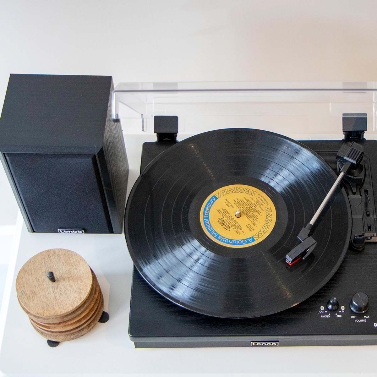 Enjoy your record collection with Lenco's LS-101BK record player. Thanks to its two speakers, both with an output power of 10W RMS, you can listen to your music at the highest possible sound quality. You can also place the speakers separately from the record player, creating a stereo effect.