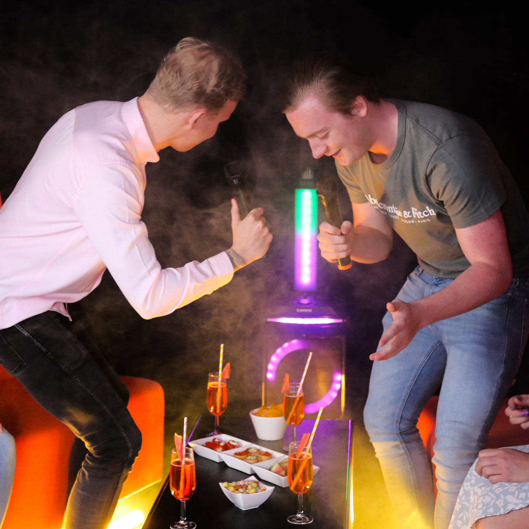 No party without this PA-220! With the lighting on the front, you can immediately turn the room into a real disco. The lighting effects can even be adjusted to the rhythm of the music. It includes two wireless microphones, so you can sing along. Don't want to sing? Easily store the microphones in the speaker’s microphone holders.