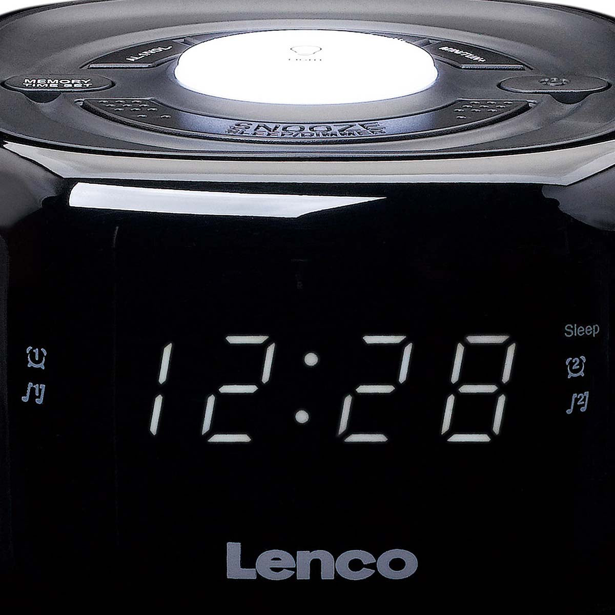 The Lenco CR-12 is a compact FM clock radio with a 0.6-inch LED screen and a night light. Get out the right side of bed and enjoy great music on your FM clock radio. Are you in the mood for jazz or rock, or would you rather be updated on the latest news? You can choose from 20 FM pre-sets.