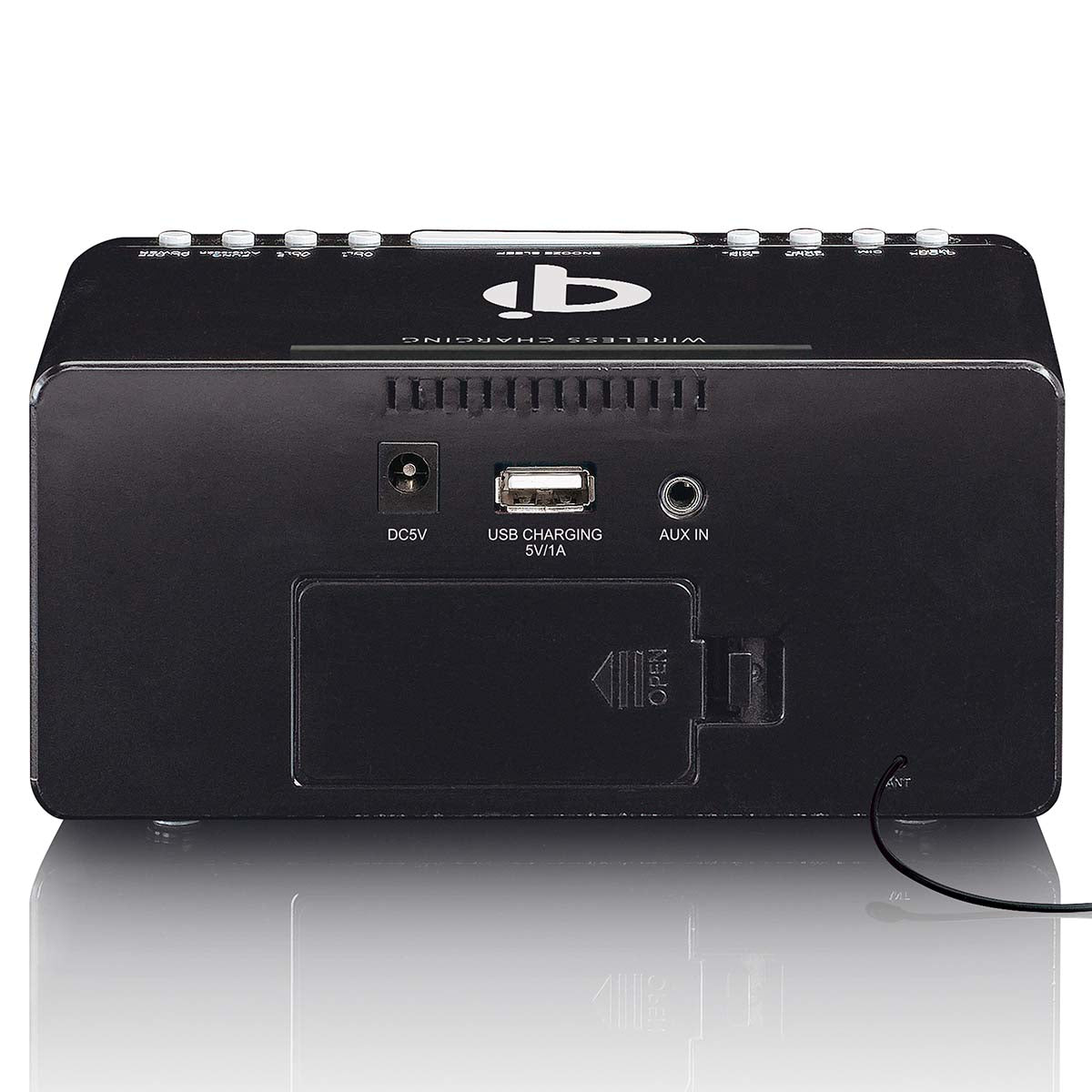LENCO CR-550BK - Stereo FM Clock Radio with USB and Qi Wireless Smartphone charging - Black