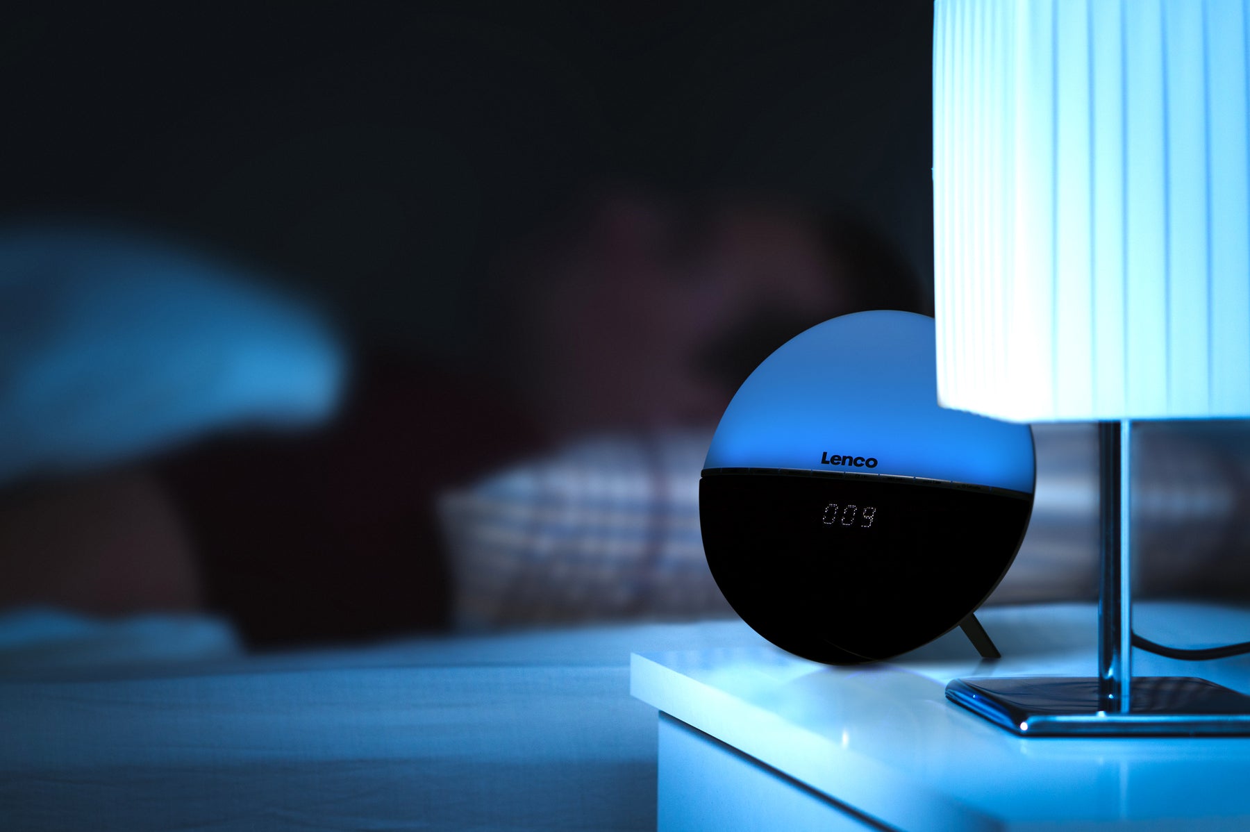 The Lenco CRW-4 is a modern FM alarm clock radio that wakes you up with light and sound ten minutes before you have to get up, the room fills with light from the Lenco CRW-4, ensuring you wake up slowly and rested. You can also stream your smartphone or tablet through the Bluetooth® function.