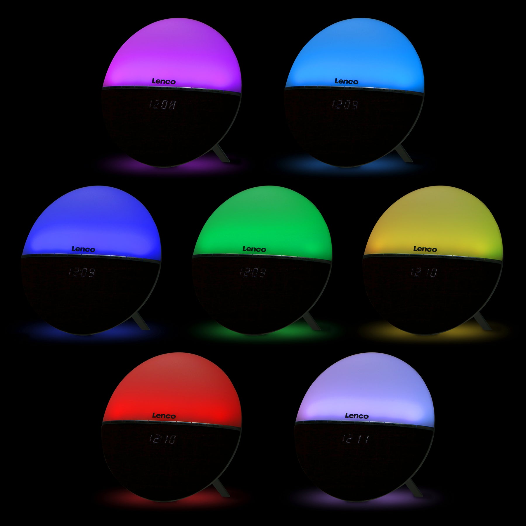 The Lenco CRW-4 has 7 different colours of light that you can select by pressing the button on the clock radio or by using the supplied remote control. Personalize the trendy clock radio in your favourite colour, so it is perfectly suited to your bedside table, a wake-up light that illuminates the room and colours your life.