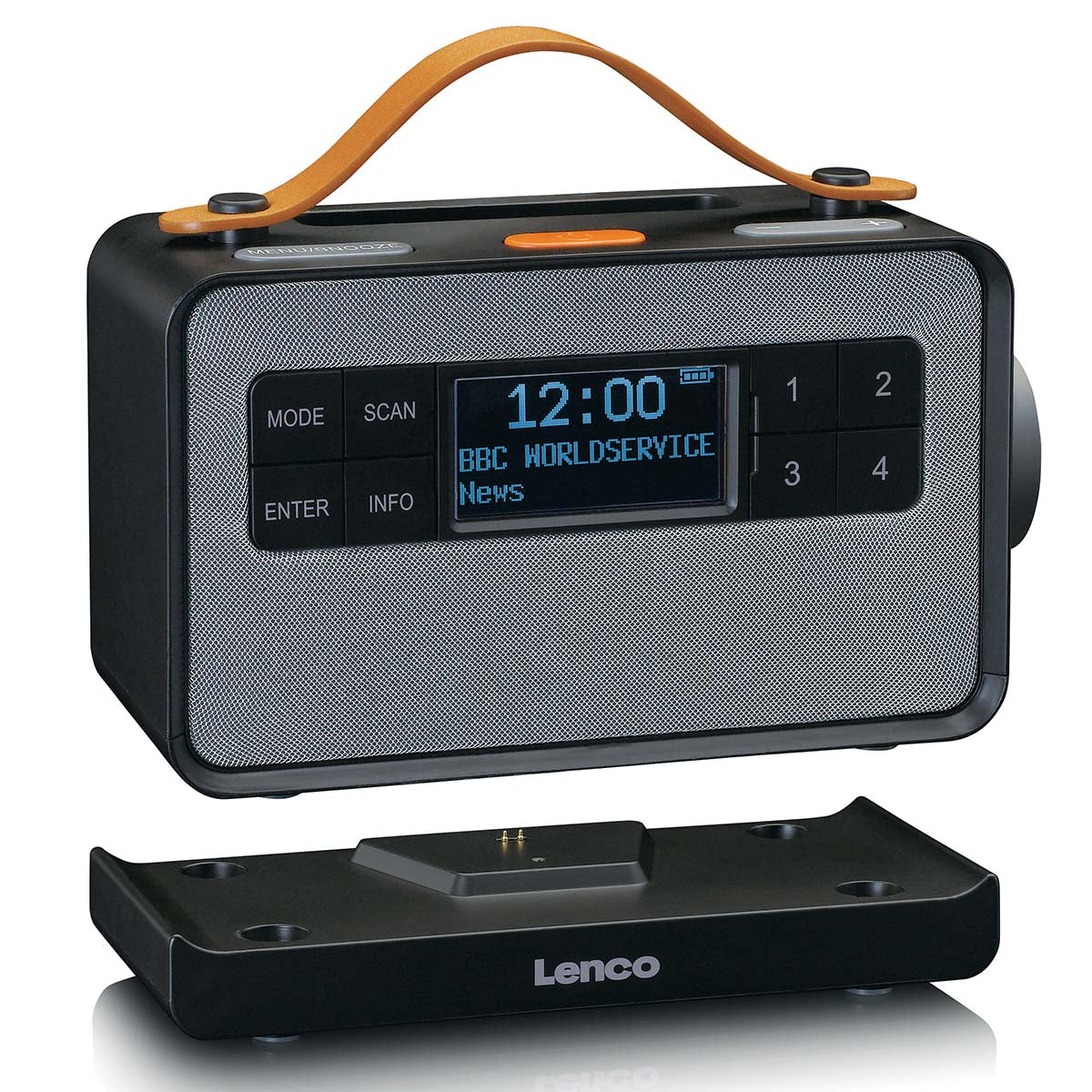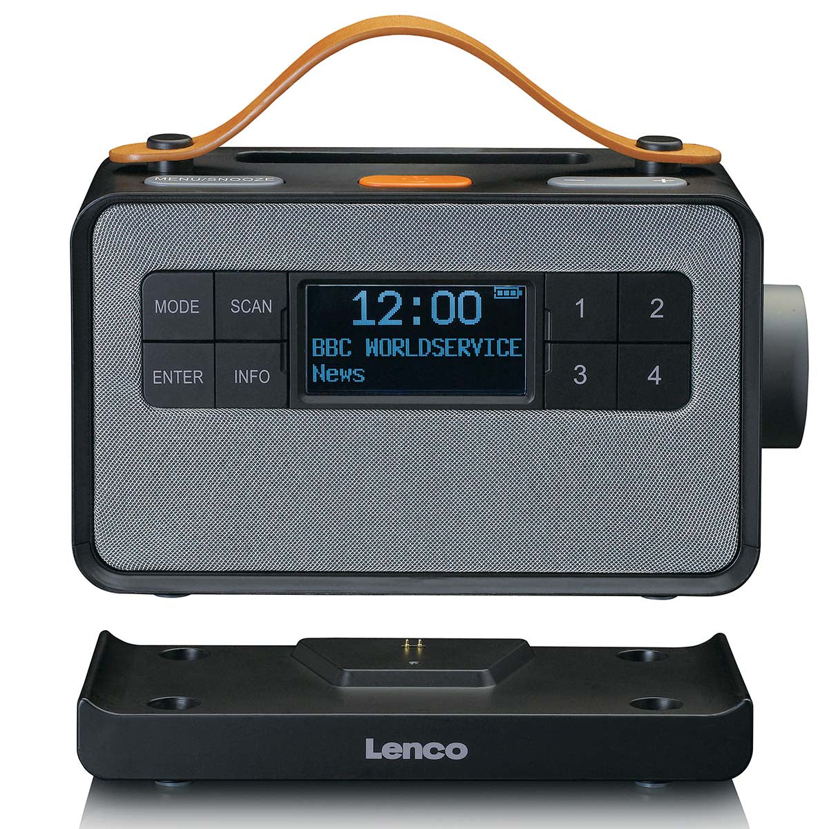 This portable radio lets you enjoy the radio with digital sound quality. This radio can also be used as a portable Bluetooth® speaker. Place your phone or tablet in the Lenco PDR-065BK’s holder and simply stream your favourite music. You can take this DAB+ radio with you on the road and use it anywhere, thanks to the integrated rechargeable battery. Charging is easy due to its included charging station.