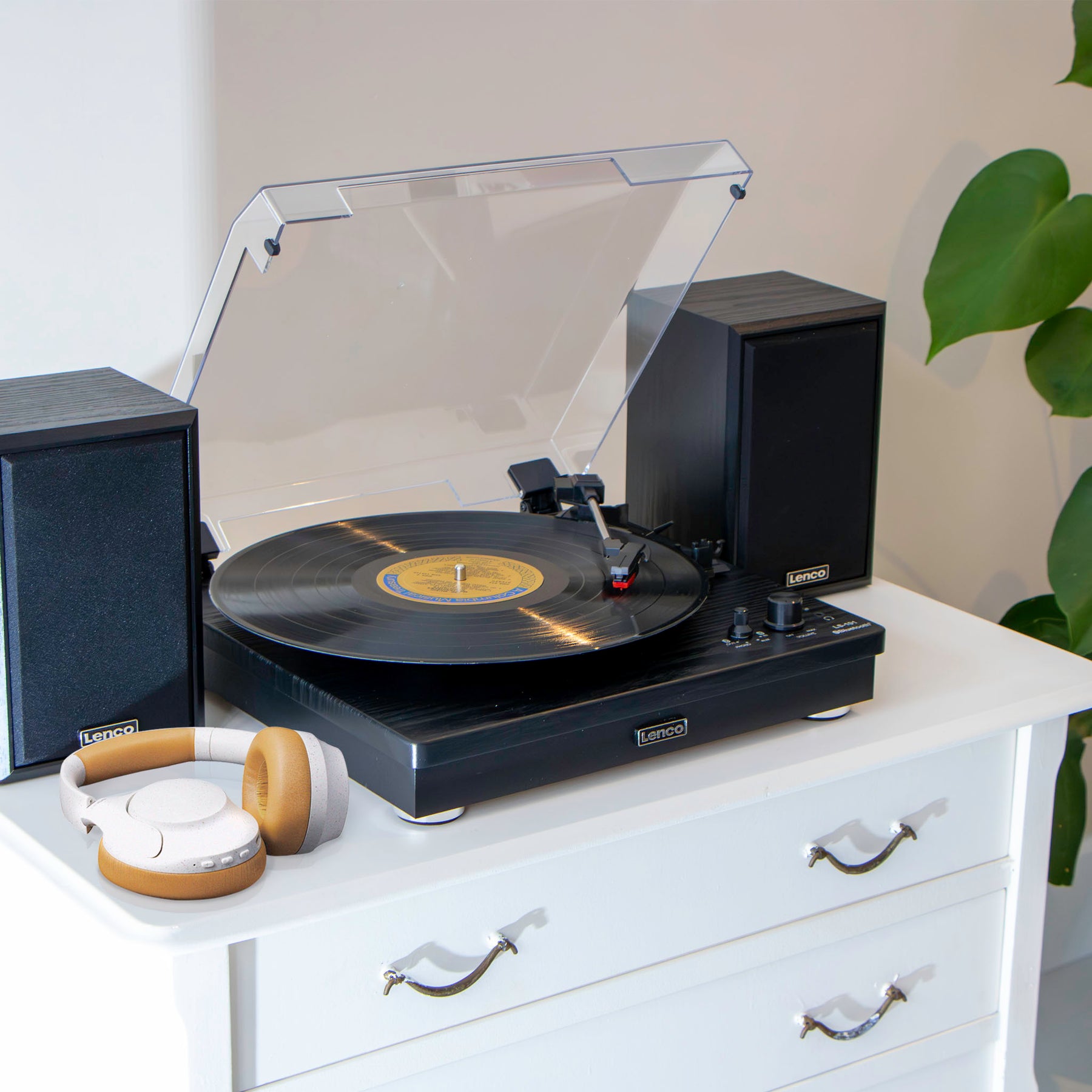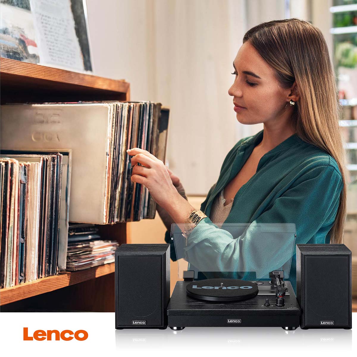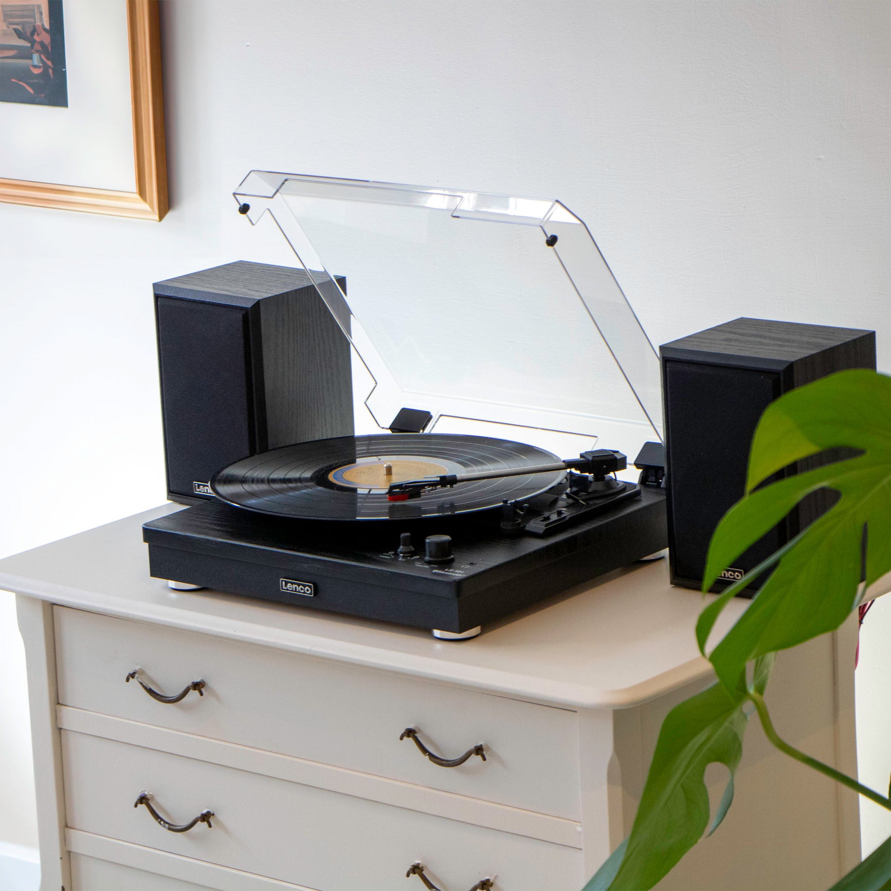 Enjoy your record collection with Lenco's LS-101BK record player. Thanks to its two speakers, both with an output power of 10W RMS, you can listen to your music at the highest possible sound quality. You can also place the speakers separately from the record player, creating a stereo effect.