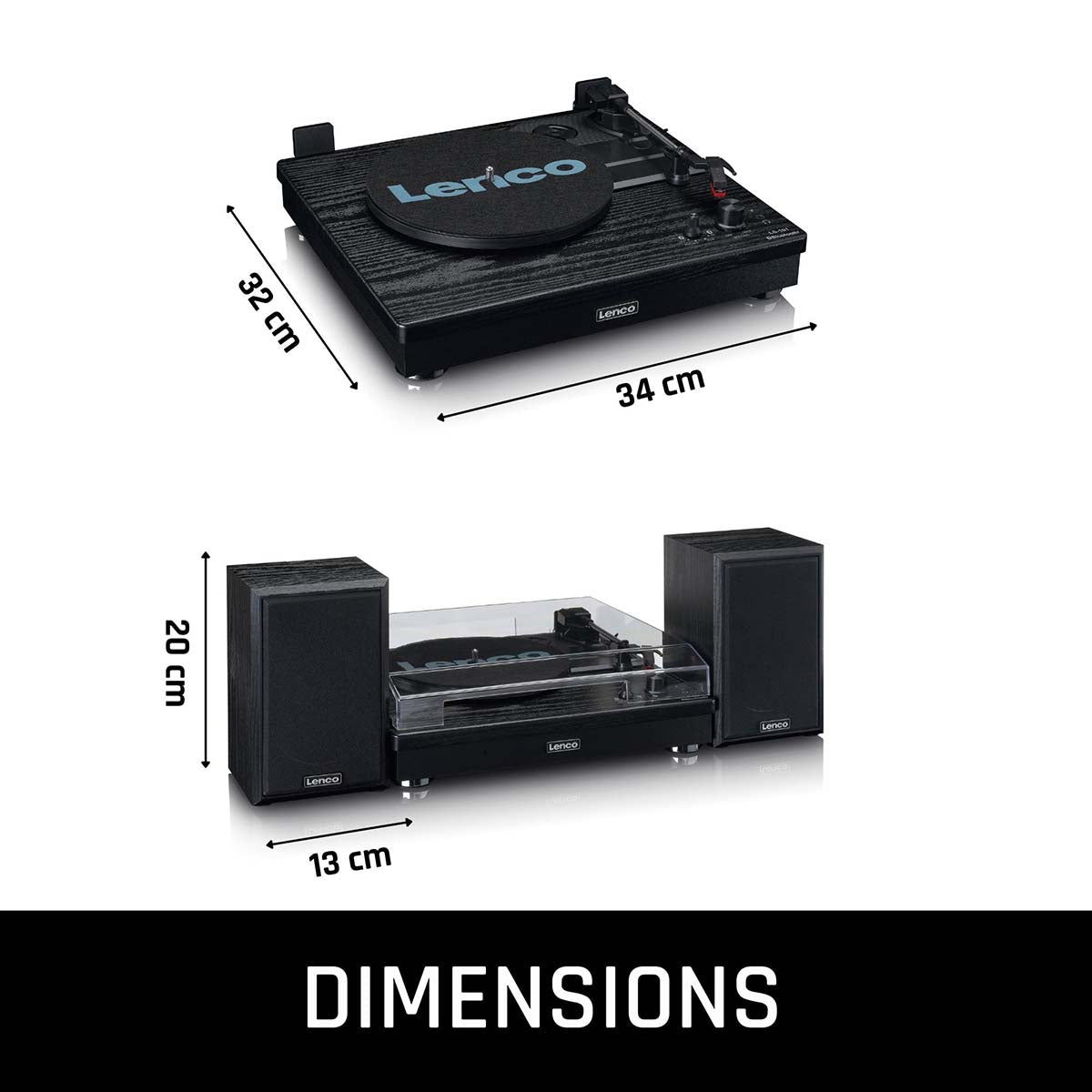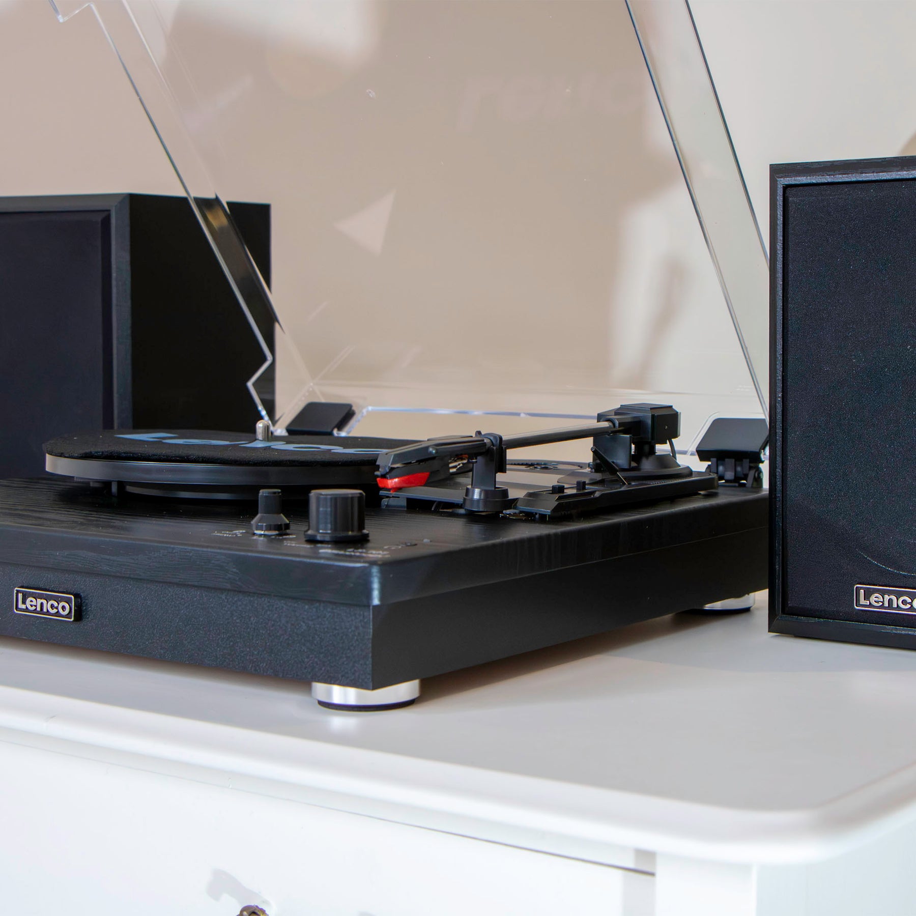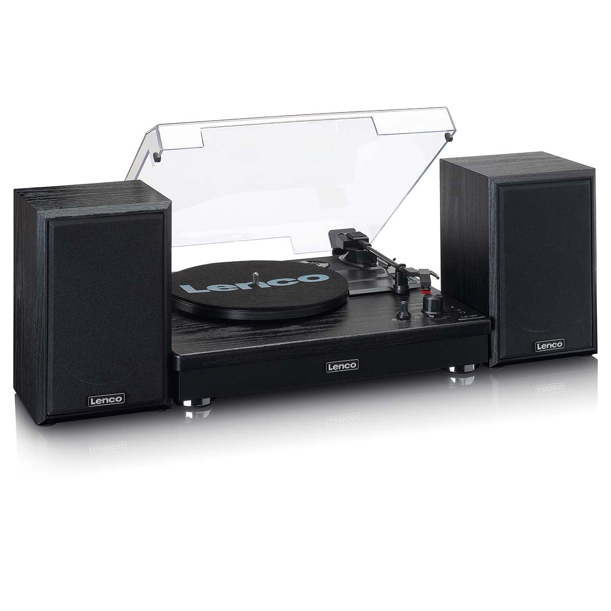 Enjoy your record collection with Lenco's LS-101BK record player. Thanks to its two speakers, both with an output power of 10W RMS, you can listen to your music at the highest possible sound quality. You can also place the speakers separately from the record player, creating a stereo effect.