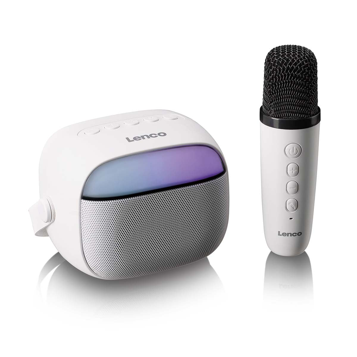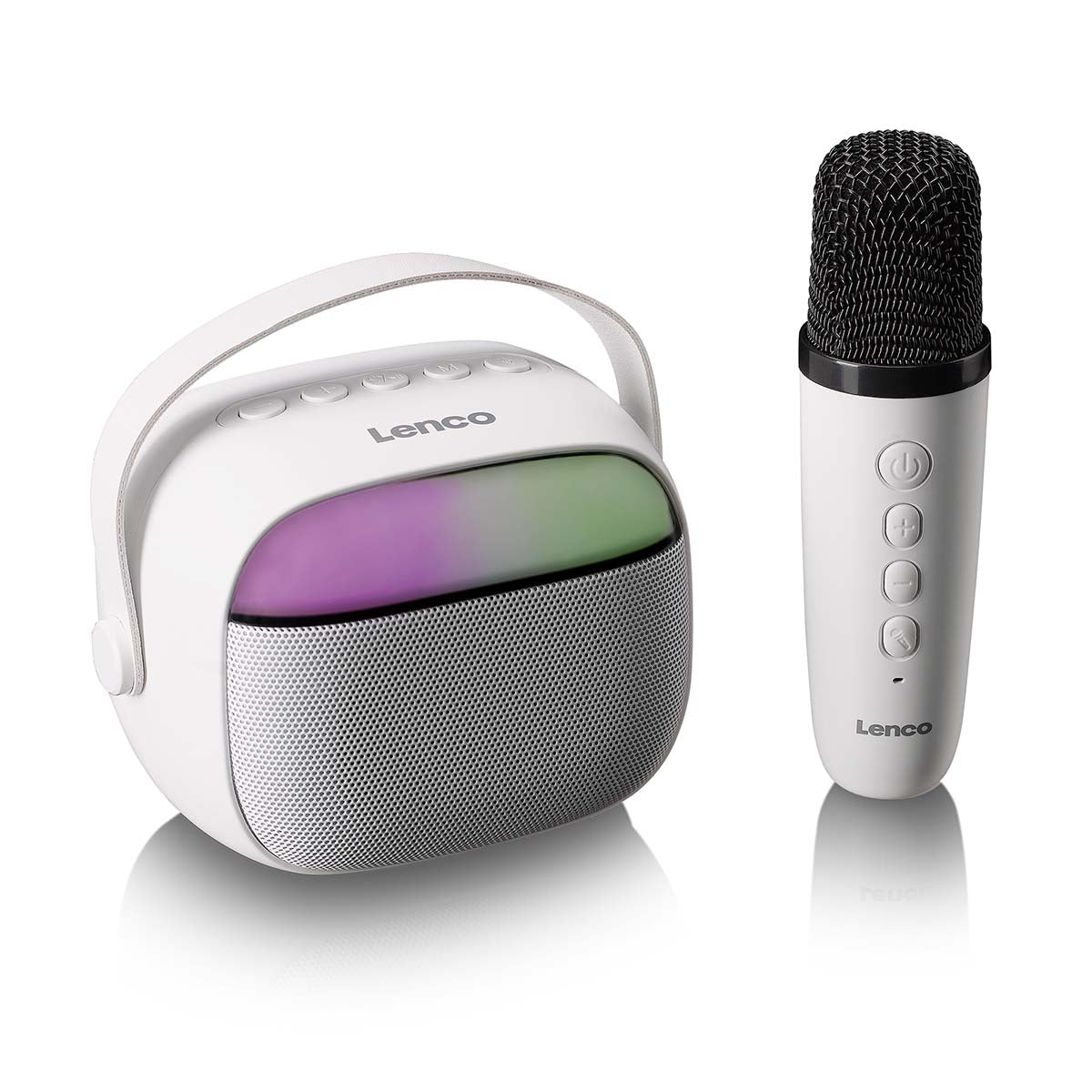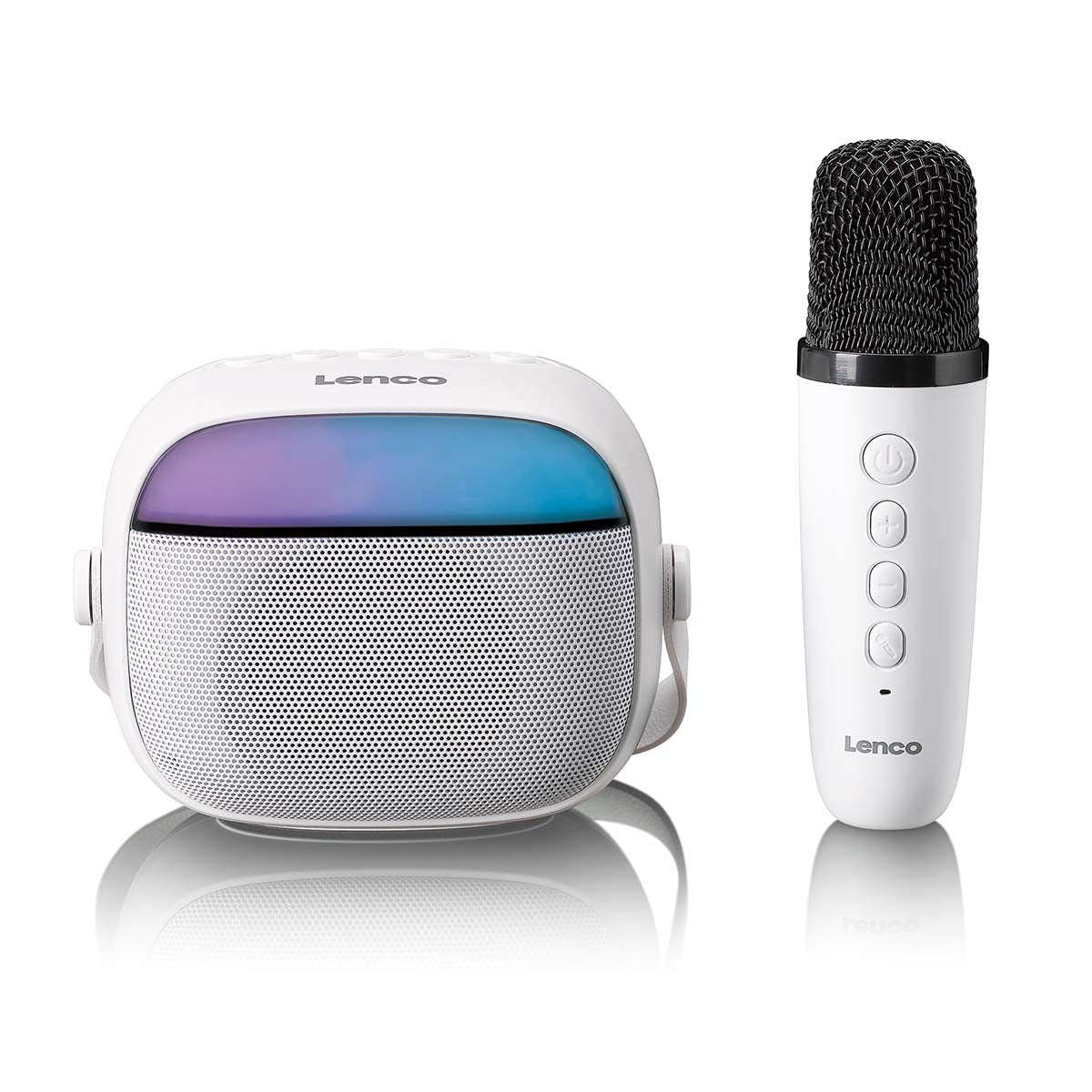 With the Lenco BTC-020WH, you bring a compact and user-friendly karaoke speaker into your home, complete with Bluetooth®, a rechargeable battery, a wireless rechargeable microphone and colourful LED light effects. This small powerhouse is perfect for spontaneous karaoke moments, children’s parties or simply enjoying music together. Thanks to its lightweight and portable design, you can easily take the BTC-020 anywhere. Connect your smartphone, play your favourite song and start singing.