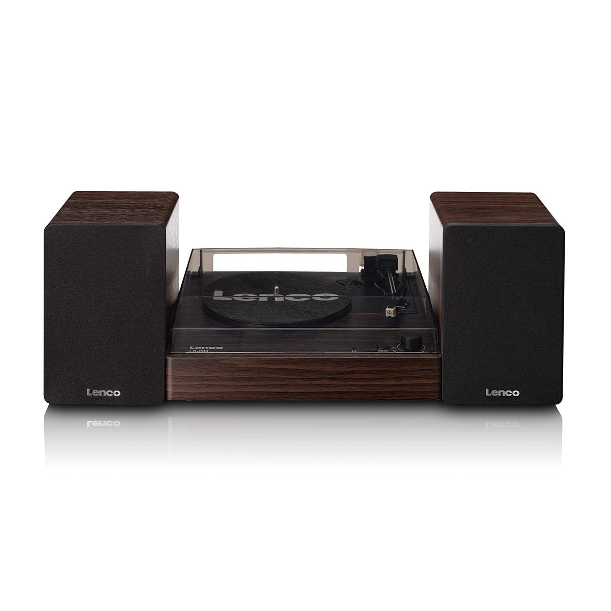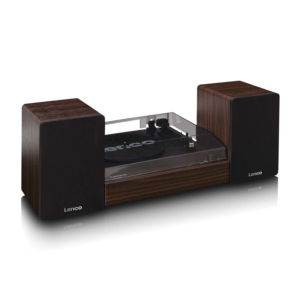 The Lenco LS-200WD is an all-in-one turntable system designed for users who want a straightforward way to play vinyl records without assembling separate components. It combines a belt-driven turntable with two matching bookshelf speakers and integrated Bluetooth® functionality. The system is suitable is ideal where ease of use, consistent sound quality, and a clean design are priorities. Finished in dark walnut, the LS-200WD offers a balanced combination of modern connectivity and traditional vinyl playback in a compact format.