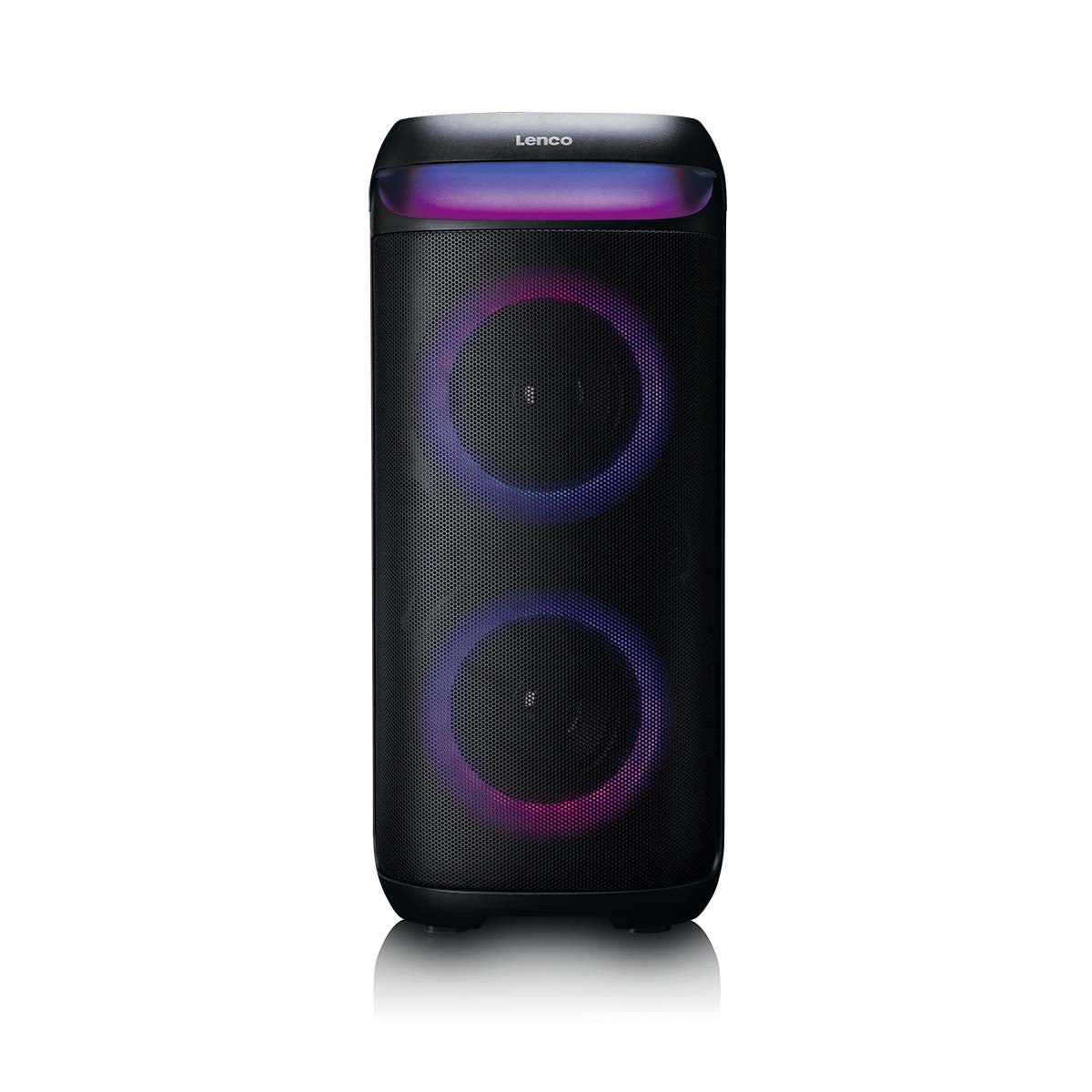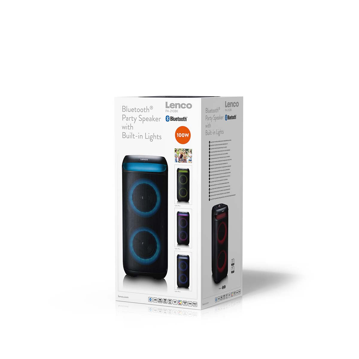 Turn every occasion into a party with the Lenco PA-210BK Bluetooth® speaker. This powerful Bluetooth® party speaker delivers impressive sound, dynamic LED lighting and versatile playback options. Thanks to Bluetooth® 5.3, you can easily connect your smartphone, tablet, record player or laptop and enjoy your favourite music wirelessly in high quality. Whether you are hosting a house party, organising a karaoke night or giving a presentation, the PA-210BK guarantees power, atmosphere and flexibility.