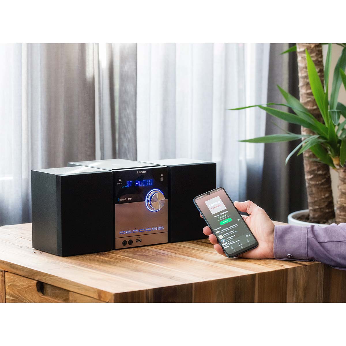 The Lenco MC-150 is a stereo set with DAB+FM radio, Bluetooth® and CD/USB player suitable for every living room. Discover the power of the speakers and listen to music with your friends or plug in your headphones and listen to your favourite song on repeat without any disturbance.