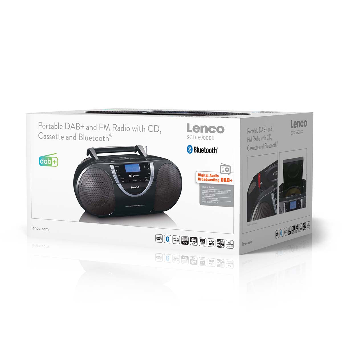 The Lenco SCD-6900 boombox is a DAB+ radio and Bluetooth® speaker that receives both DAB+ and FM frequencies without interference.