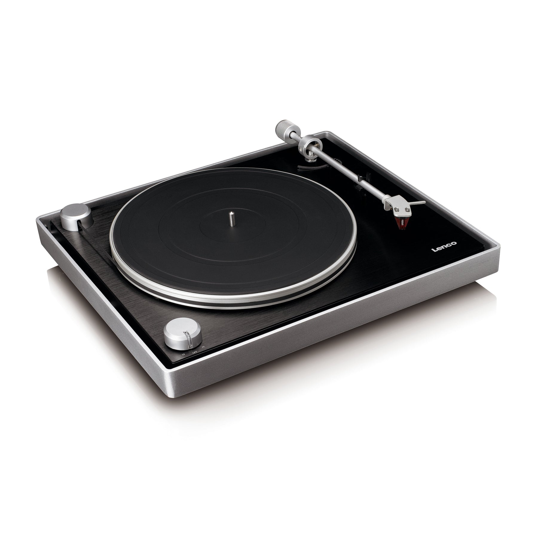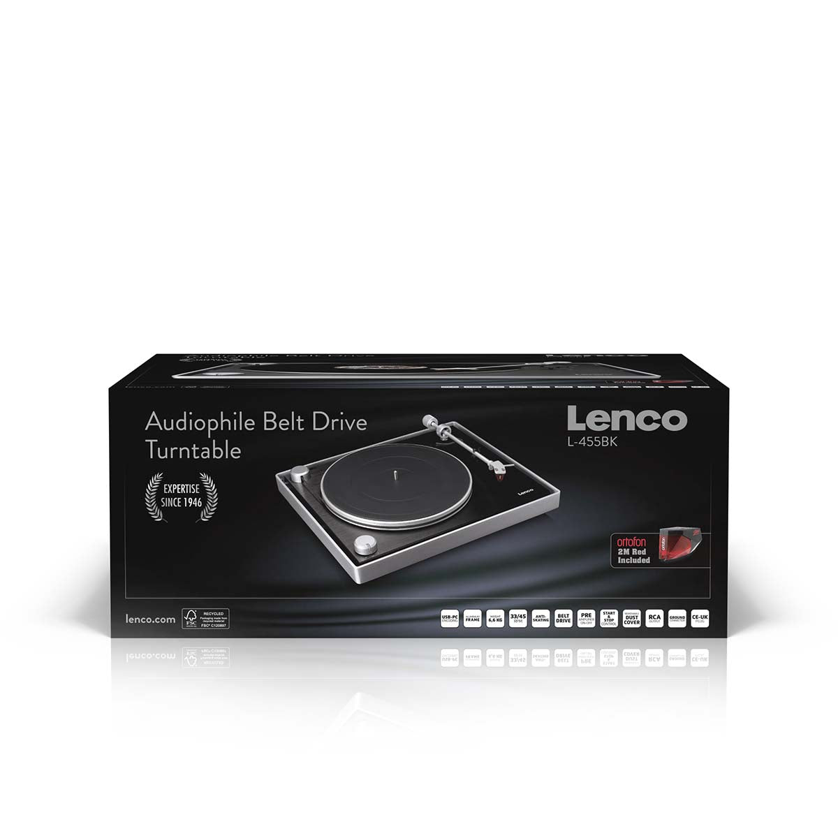 Meet the Lenco L-455BK, a high-end record player from Lenco's Expertise line, featuring a visible belt drive, a brushed aluminium frame, and the Ortofon 2M RED cartridge. The unique design, with its externally visible belt drive, exudes modernity and sophistication. The L-455BK is also equipped with a 300 mm metal turntable platter that, combined with the belt drive, ensures smooth and stable rotation. Thanks to the premium Ortofon 2M RED cartridge and automatic control and correction of rotation speed, your records are always played with ultimate precision. With the start-stop operation and mechanical tonearm lift, you’ll enjoy an intuitive and professional user experience. Are you a true audiophile? Read on and be inspired by the Lenco L-455BK, a record player that perfectly balances technology, design, and exceptional sound quality.
