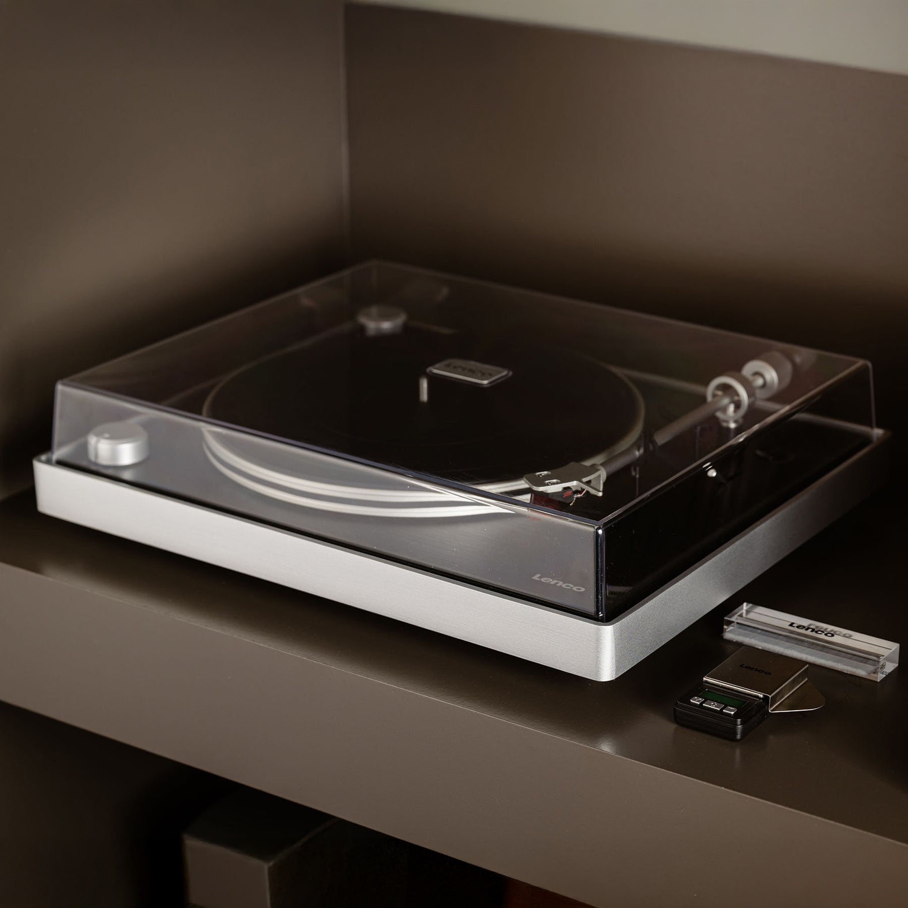 - High-end record player with visible belt drive