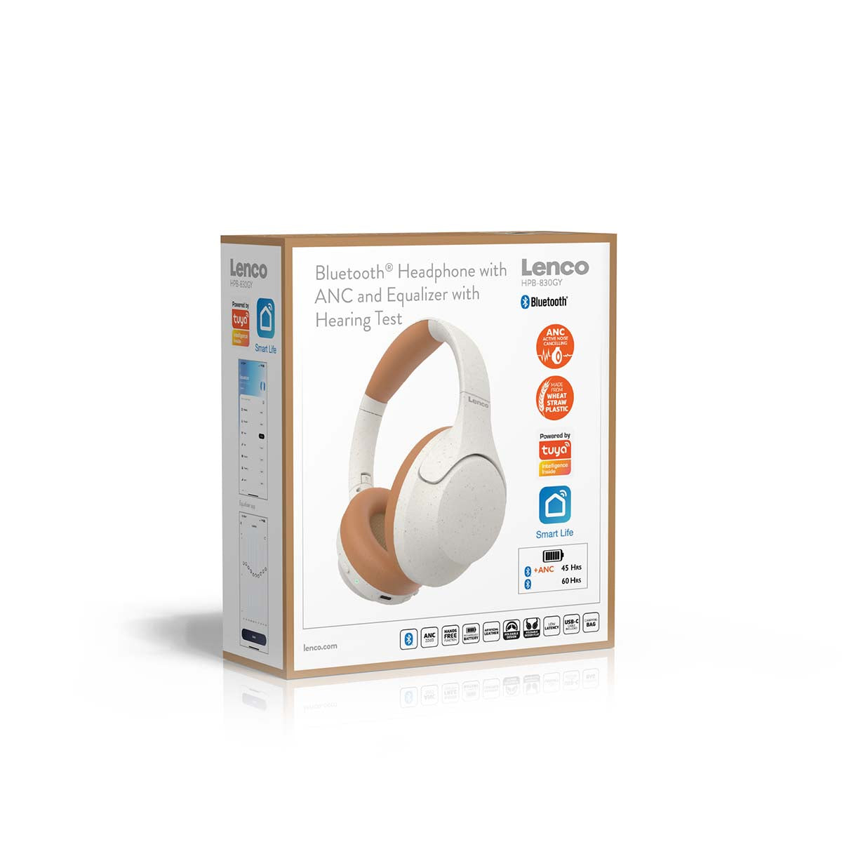 The headphone's casing is made from recycled ABS and wheat fibers, while the gift box is crafted from recyclable FSC cardboard. By choosing the HPB-830GY as your new headphones, you contribute to a more sustainable world.