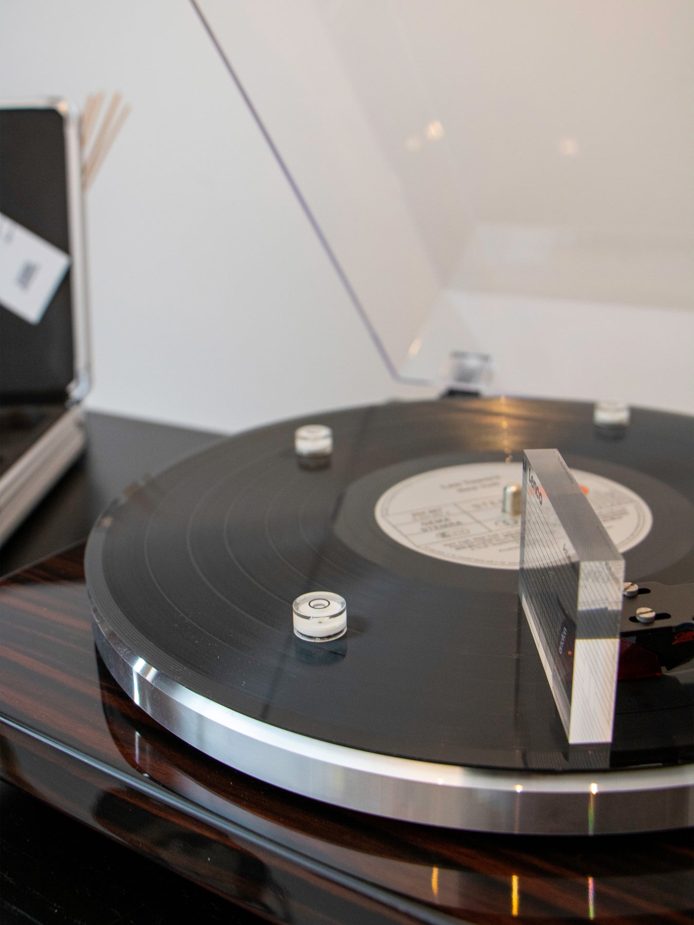 With the four small spirit levels, it's easy to check if the individual parts of the turntable are correctly mounted in relation to each other. They can be used individually to check the correct position of the tonearm relative to the turntable platter. For the passionate turntable enthusiast, these four small spirit levels are a valuable addition to a perfectly balanced listening environment.