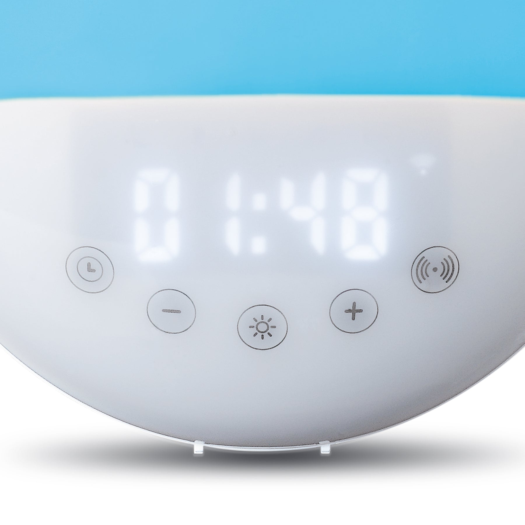 The alarm clock simulates a sunset in the evening and fills the room again in the morning with the sunrise. By slowly increasing the light intensity and allowing it to change colour, you will be awakened gradually, setting you for a great day. The lighting is fully adjustable in 30 settings and different colours.