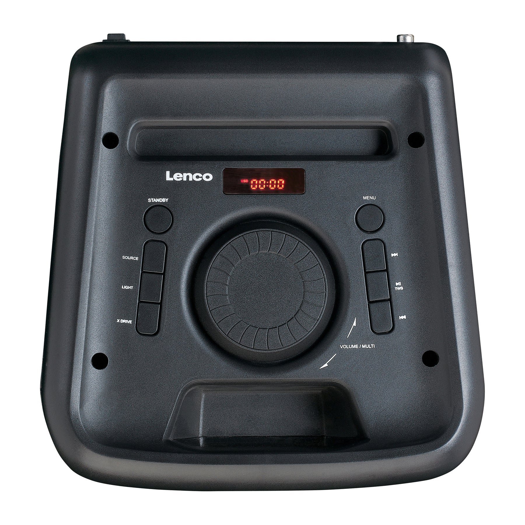 The Lenco PA-200 can also be used wirelessly. Fully charged, you can listen to up to eight hours of music without lights and party for four hours with lights and music!