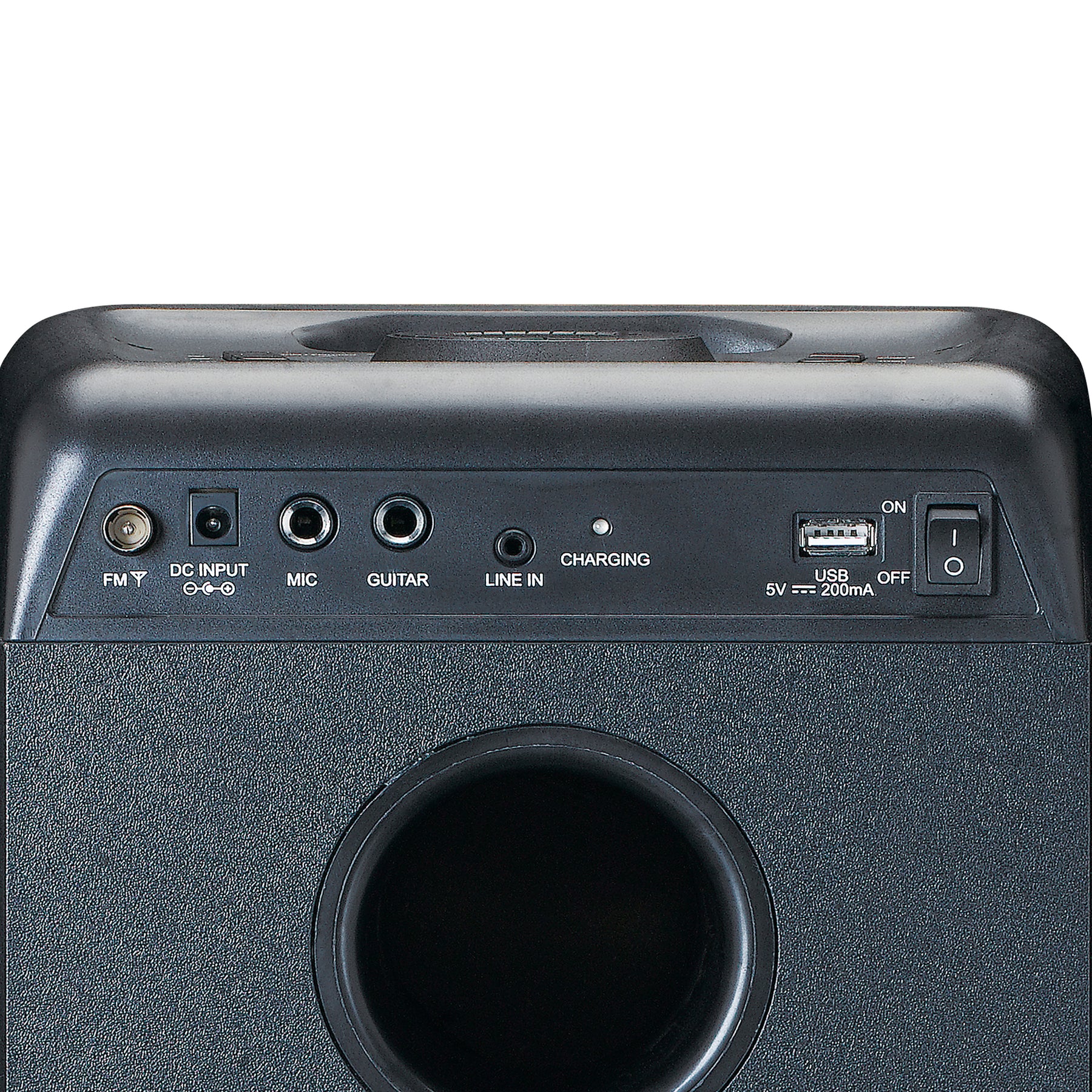 No party without this PA-200! With the lighting on the front, you can immediately turn the room into a real disco. The lighting effects can even be adjusted to the rhythm of the music. Plug in a microphone or guitar and make the party complete. And if your phone unexpectedly runs out of battery, you can recharge it using the USB charger without interrupting the party.
