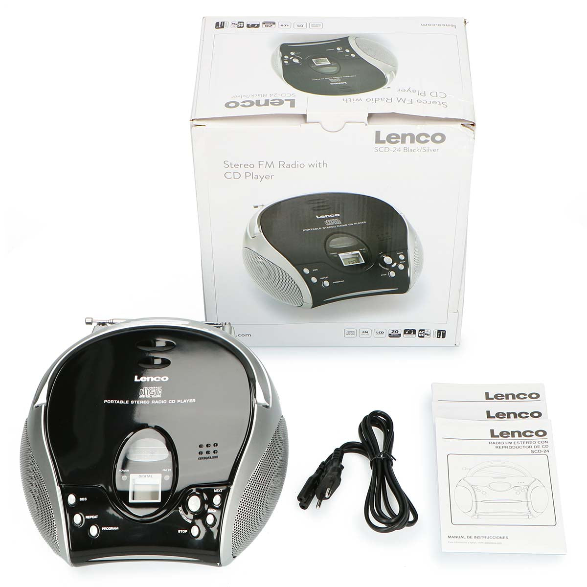 Lenco SCD-24 to przenośne radio FM/odtwarzacz CD dla młodych i starszych. Dzięki prostej konstrukcji Lenco SCD-24 jest łatwy w obsłudze. Wystarczy podłączyć Lenco SCD-24 do gniazdka elektrycznego lub źródła zasilania bateryjnego. Za jednym naciśnięciem przycisku możesz od razu cieszyć się słuchaniem ulubionej płyty CD lub stacji radiowej.