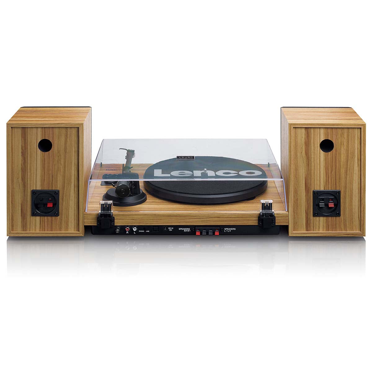 Lenco LS-500 to gramofon z 2 oddzielnymi drewnianymi głośnikami i łatwy w użyciu. Dzięki temu możesz błyskawicznie cieszyć się ulubioną płytą winylową, a dołączone głośniki można łatwo podłączyć.