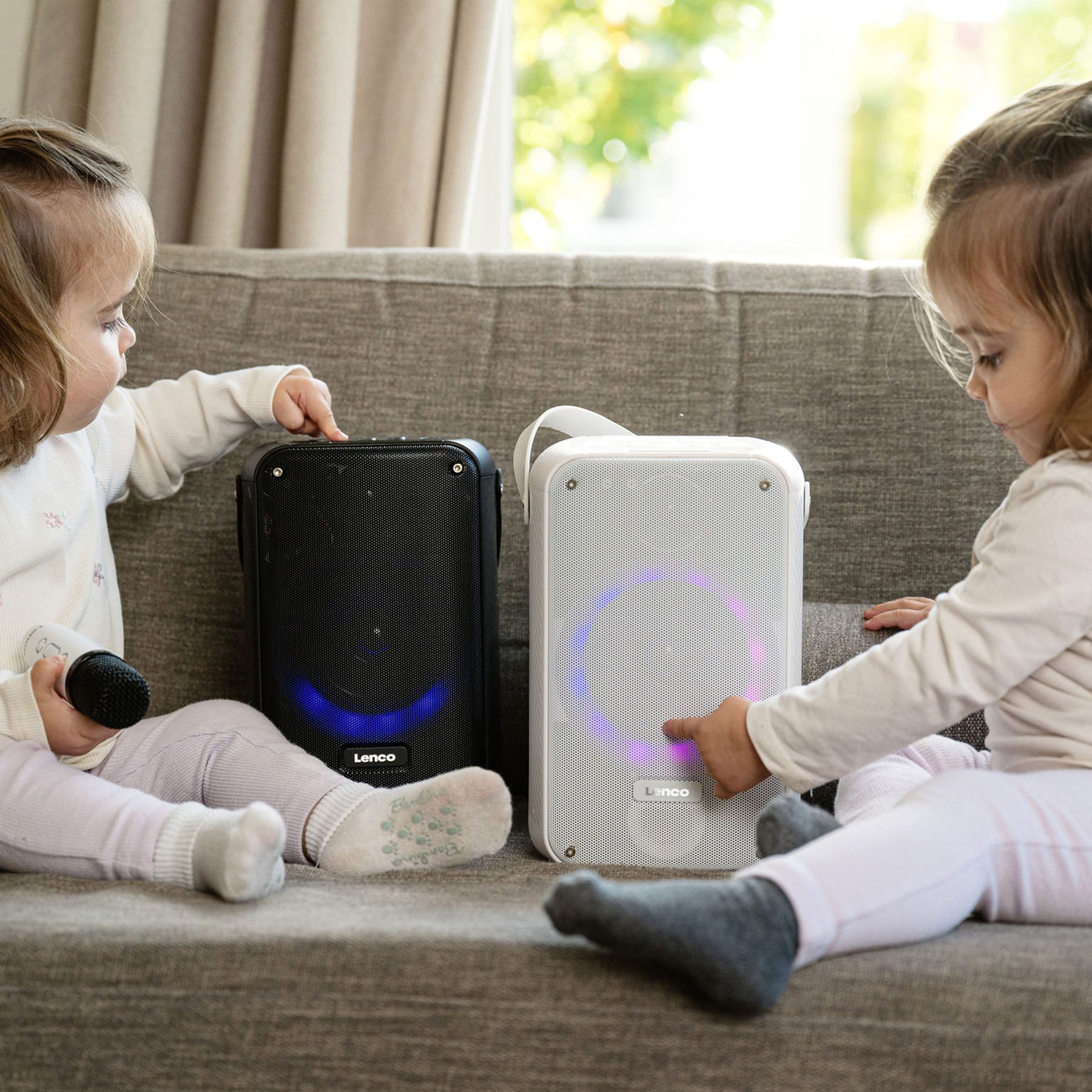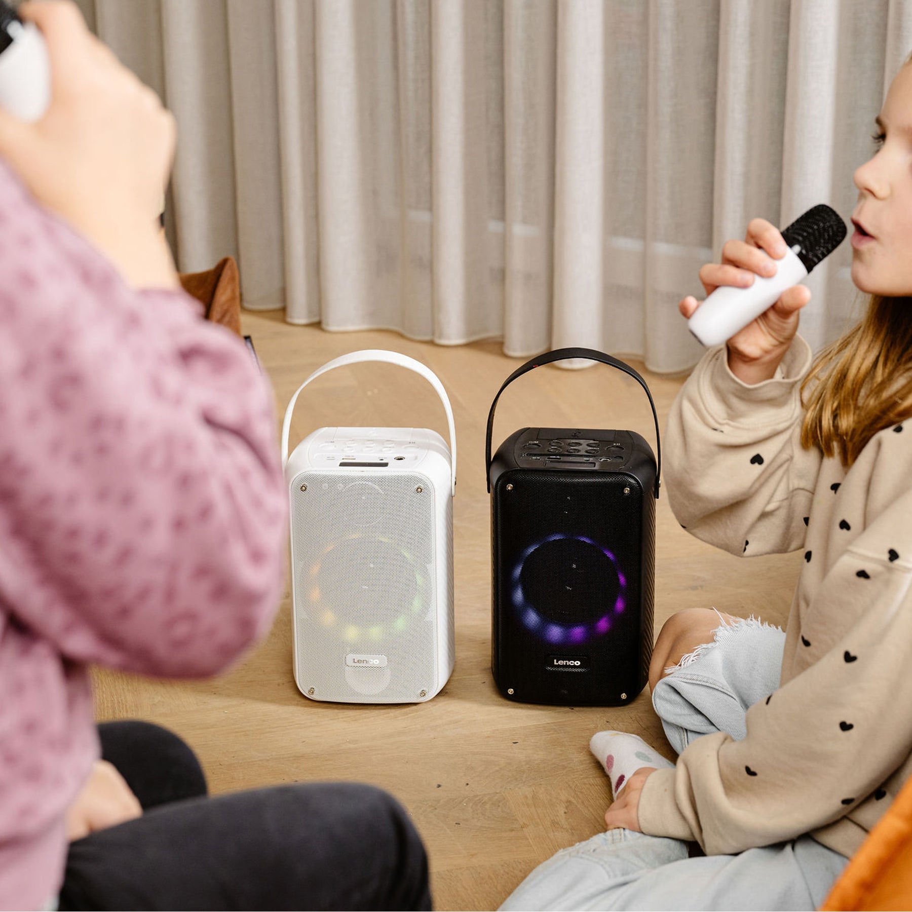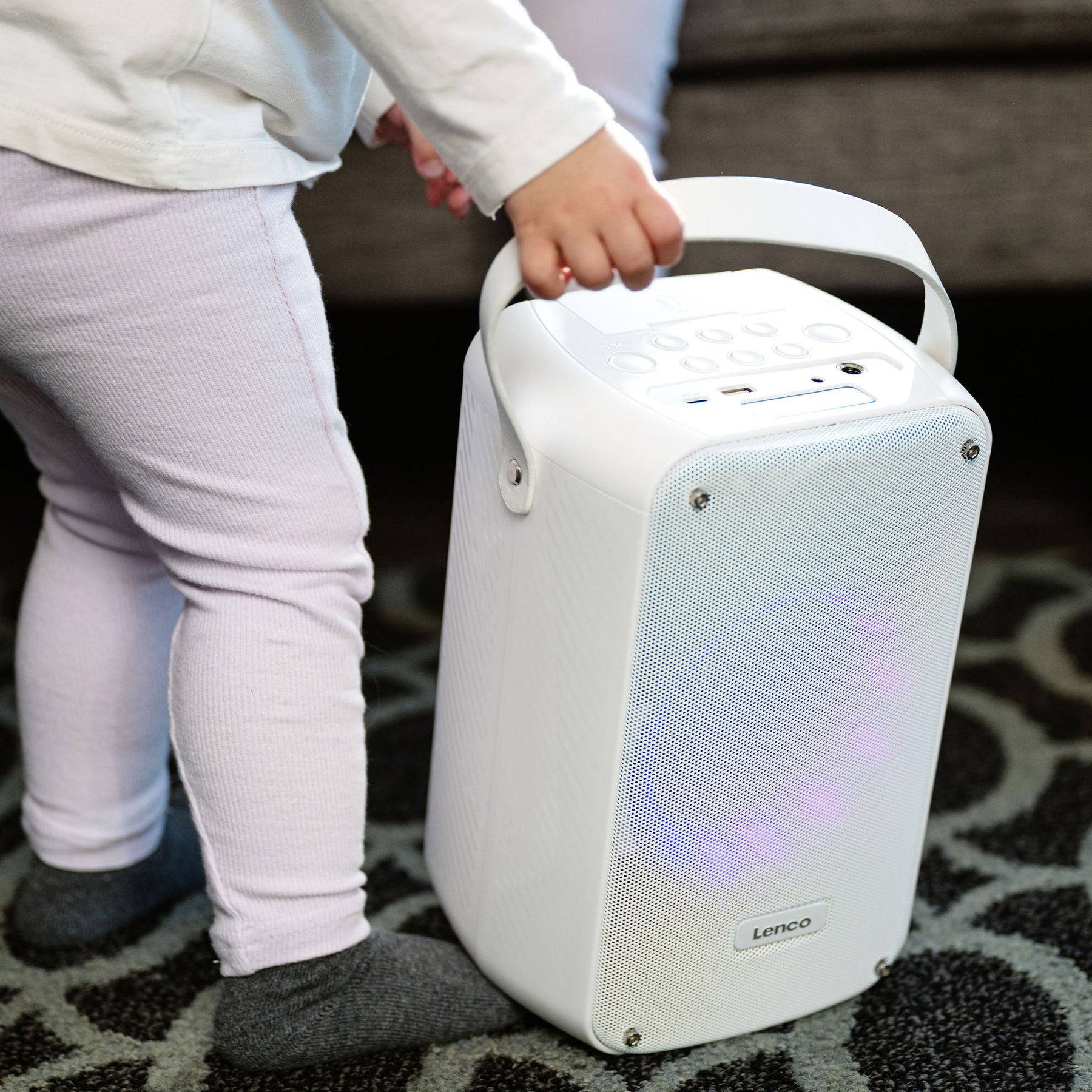 Dzięki Lenco BTC-060WH otrzymujesz kompletny zestaw do karaoke wyposażony w Bluetooth®, akumulator, bezprzewodowy mikrofon do karaoke z możliwością ładowania, oświetlenie dyskotekowe LED oraz pilot z efektami dźwiękowymi i zmieniacz głosu. Trudno nam to sobie wyobrazić, ale czy nie jesteś fanem karaoke? BTC-060WH to nadal właściwy wybór dla Ciebie. Mikrofon do karaoke można wygodnie przechowywać w głośniku Bluetooth. Dzięki przenośnej konstrukcji i wadze zaledwie 1,42 kg możesz zabrać głośnik w dowolne miejsce. Ciesz się nawet 12 godzinami nieprzerwanej zabawy dzięki wbudowanemu akumulatorowi 2400 mAh. Dzięki Lenco BTC-060WH impreza jest dosłownie w Twoich rękach! Rozpocznijmy tę imprezę (karaoke)!