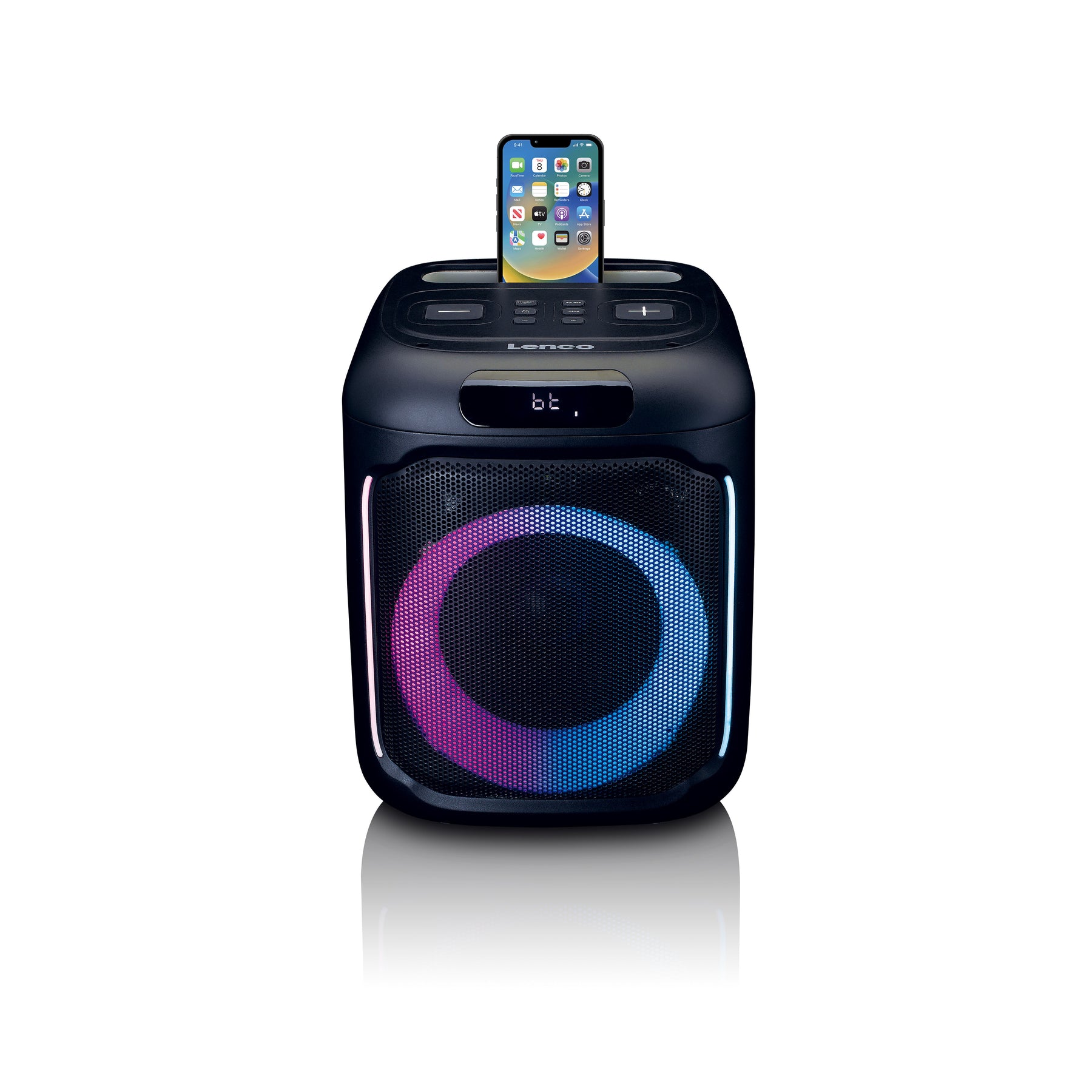 Lenco PA-100BK to przenośny głośnik imprezowy Bluetooth® z dostosowywanymi i sterowanymi muzyką efektami świetlnymi LED z przodu. Potężny wzmacniacz klasy D z trybem X-drive ma moc wyjściową 100 W RMS. Dzięki tej mocy wyjściowej możesz mieć pewność, że Twoja muzyka zrobi wrażenie. 6,5-calowy głośnik niskotonowy i 1-calowy głośnik wysokotonowy zapewniają również mocny, głęboki bas i wyraźne wysokie tony, co zapewnia imponujący i zrównoważony profil dźwiękowy.