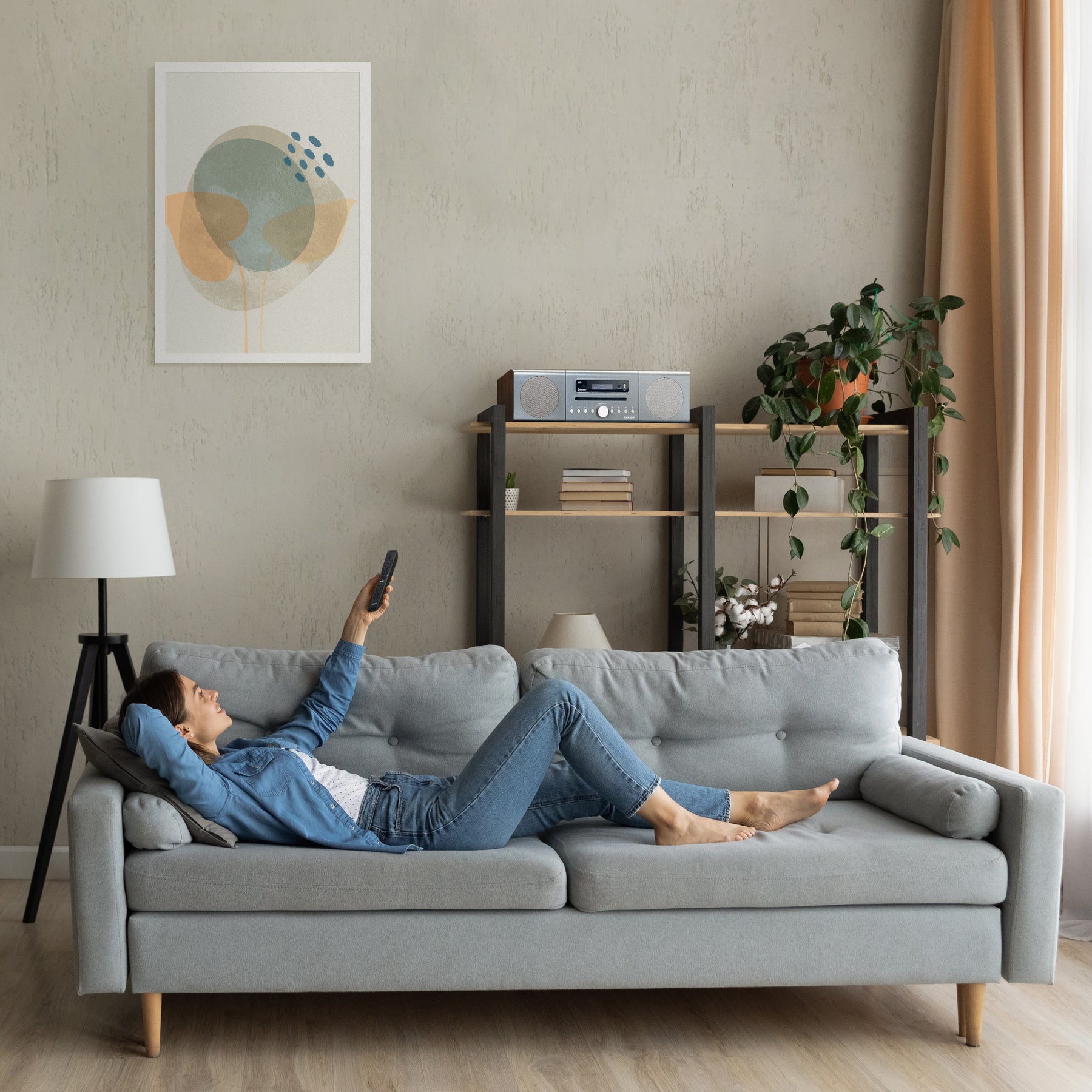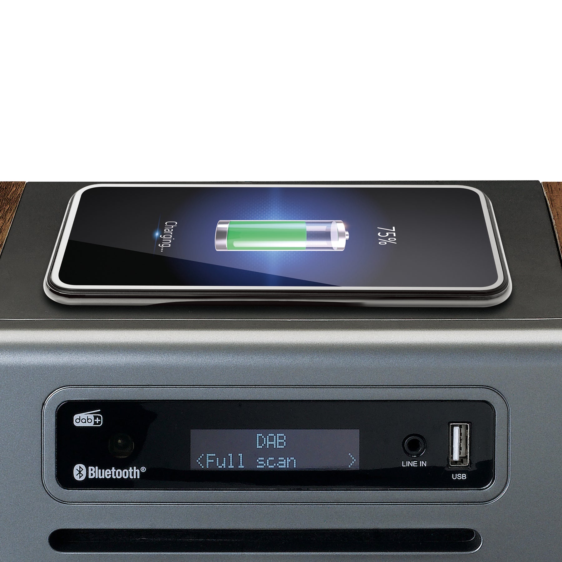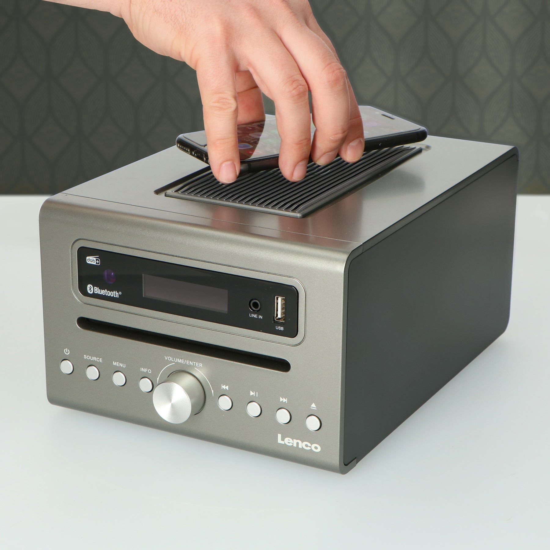 Zestaw stereofoniczny MC-175 firmy Lenco jest wyposażony w korektor, dzięki któremu możesz dostosować dźwięk do własnych upodobań i pomieszczenia. Ponieważ urządzenie zawiera moduł Bluetooth® 5.0, nie ma znaczenia, czy Twój telefon lub tablet znajduje się daleko od niego. Dodatkowo, dzięki możliwości ustawienia podwójnego alarmu, może pełnić funkcję budzika. MC-175 umożliwia także bezprzewodowe ładowanie smartfona (10 W).