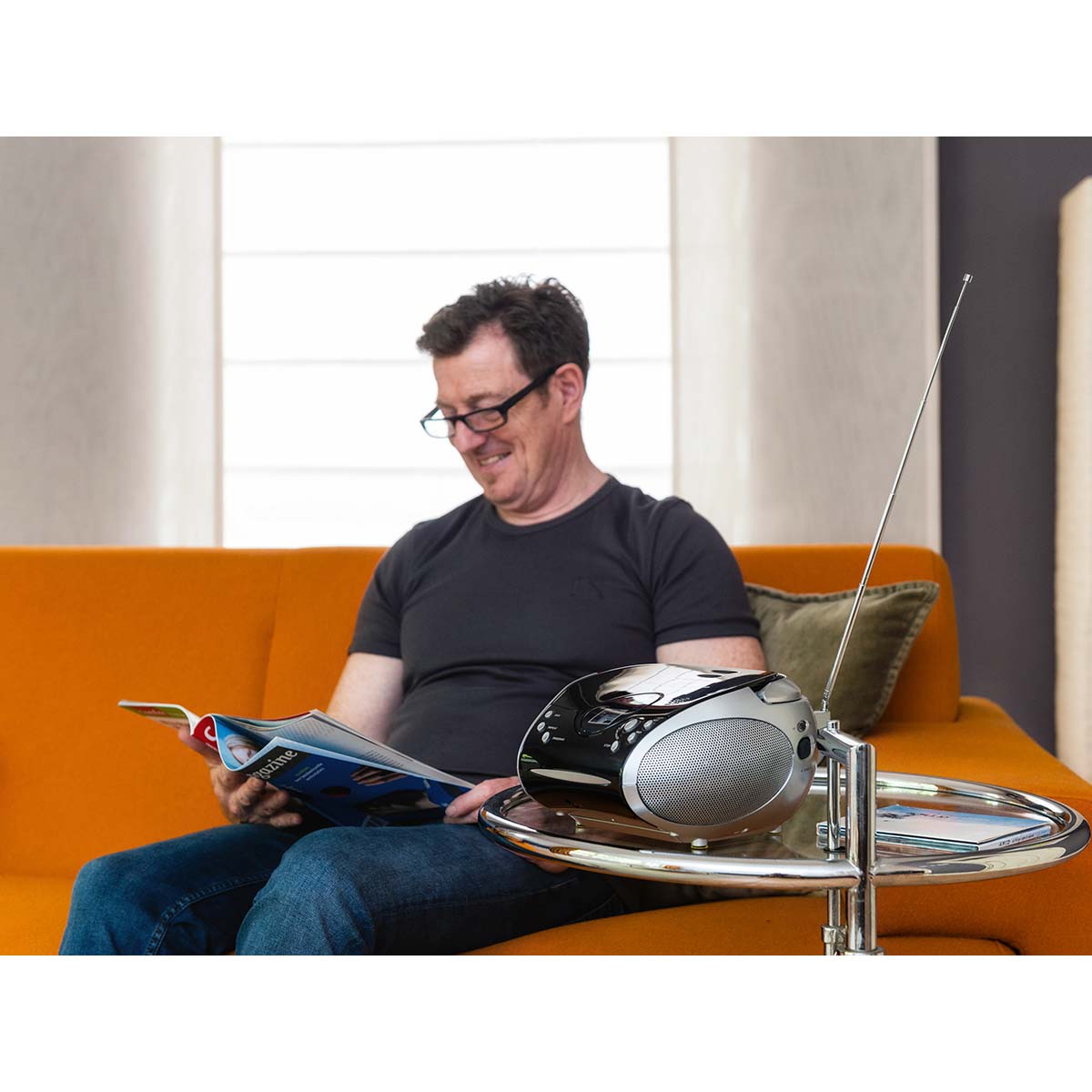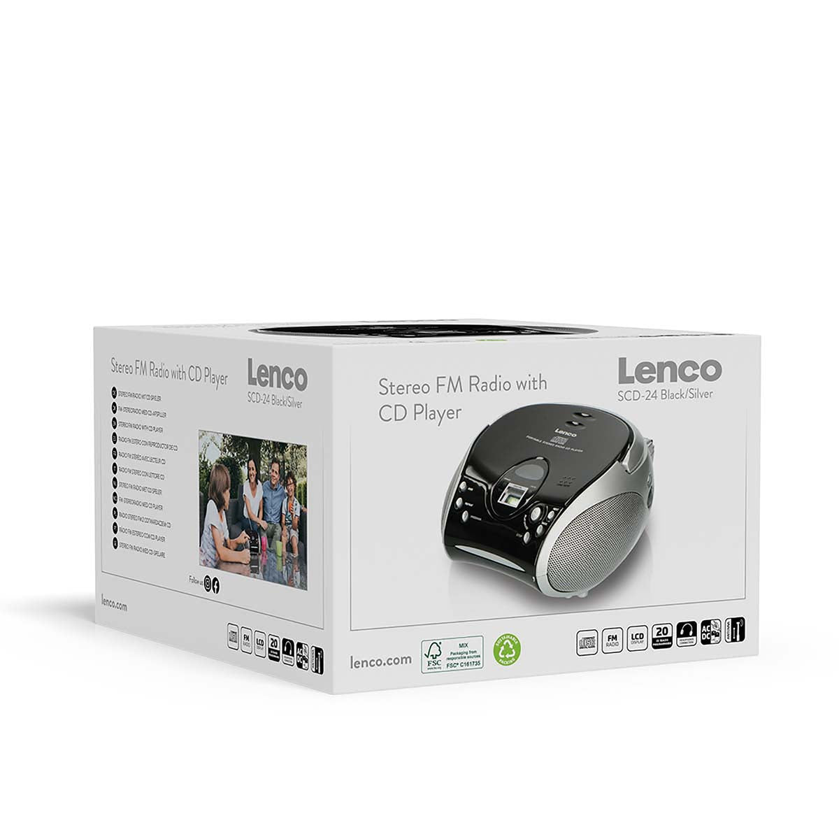Lenco SCD-24 to przenośne radio FM/odtwarzacz CD dla młodych i starszych. Dzięki prostej konstrukcji Lenco SCD-24 jest łatwy w obsłudze. Wystarczy podłączyć Lenco SCD-24 do gniazdka elektrycznego lub źródła zasilania bateryjnego. Za jednym naciśnięciem przycisku możesz od razu cieszyć się słuchaniem ulubionej płyty CD lub stacji radiowej.