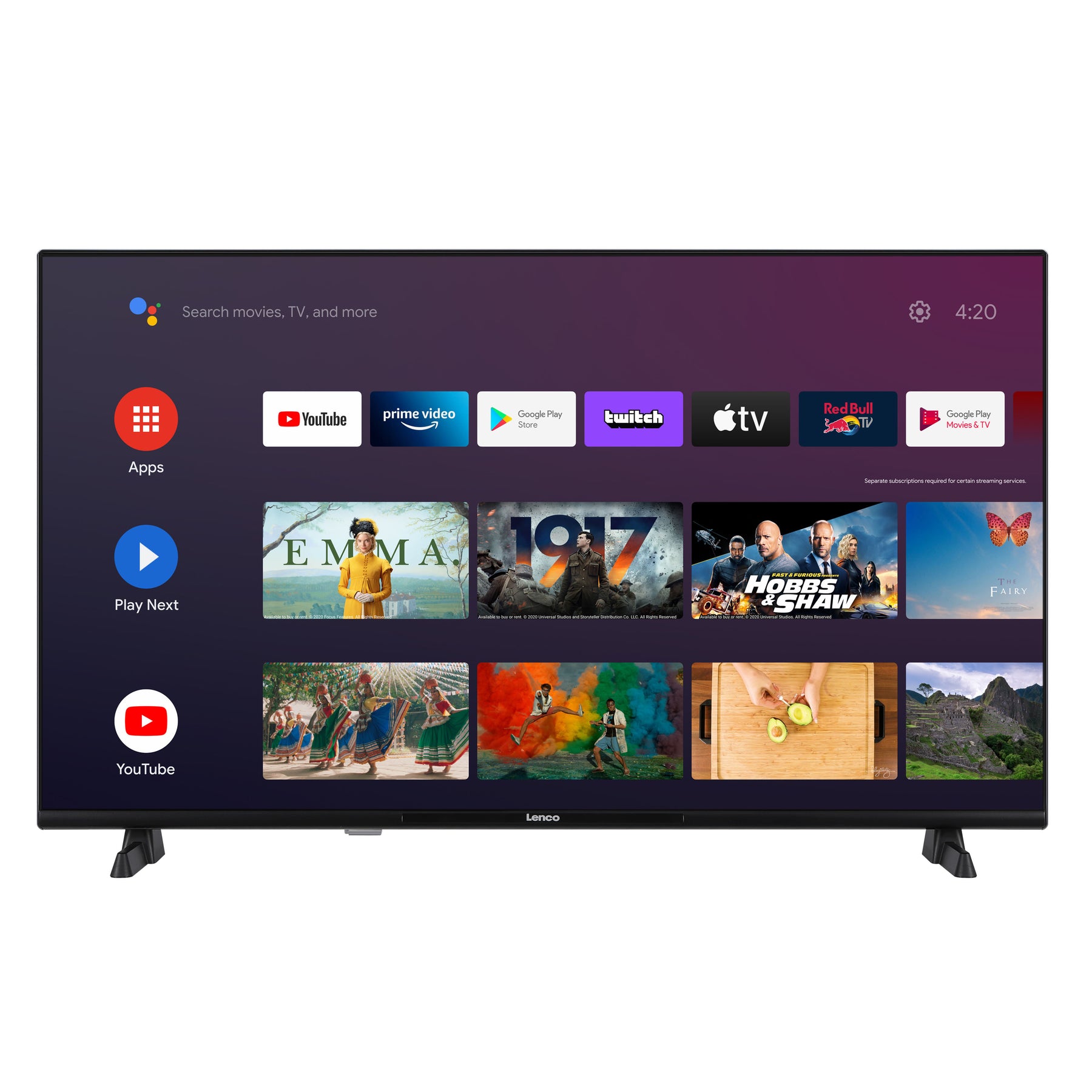 Lenco LED-4044BK to telewizor Smart TV, który można podłączyć do Internetu za pomocą Wi-Fi lub kabla sieciowego. Korzystając z przejrzystego menu, wystarczy wybrać jedną z szerokiej gamy aplikacji lub skorzystać z przeglądarki. Netflix, Amazon Prime, Disney+, Apple TV i YouTube są już zainstalowane. Możesz instalować własne aplikacje, korzystając ze Sklepu Google Play. Przesyłaj strumieniowo ulubione programy telewizyjne i filmy oraz szybko i łatwo przełączaj się między telewizją na żywo a aplikacjami.