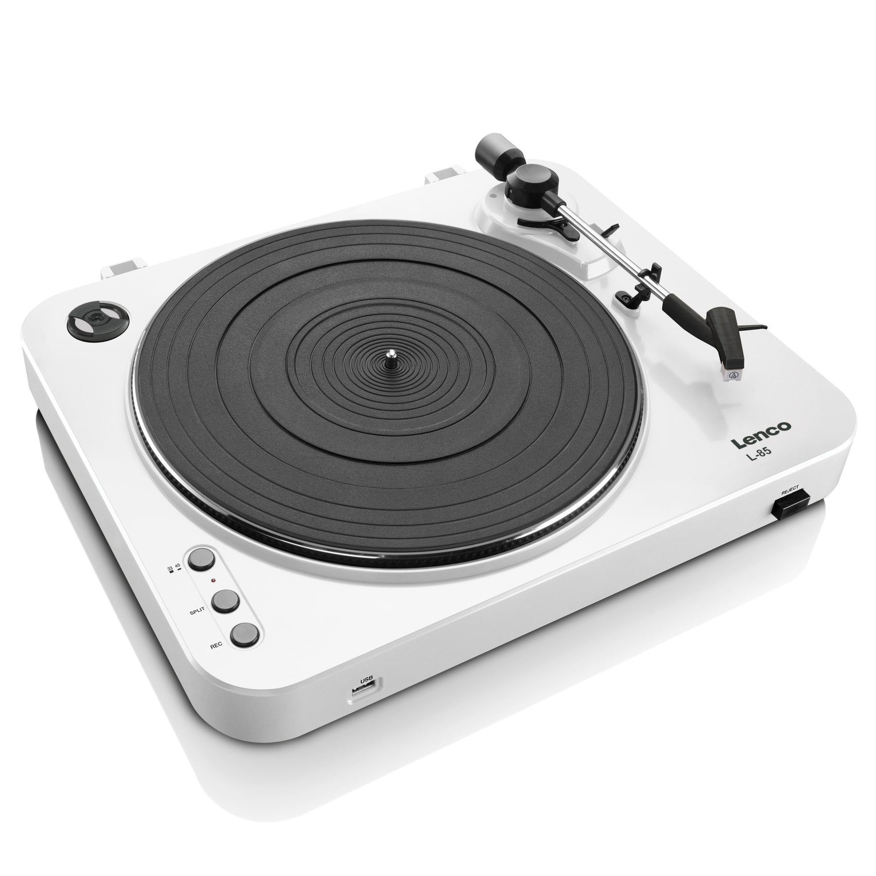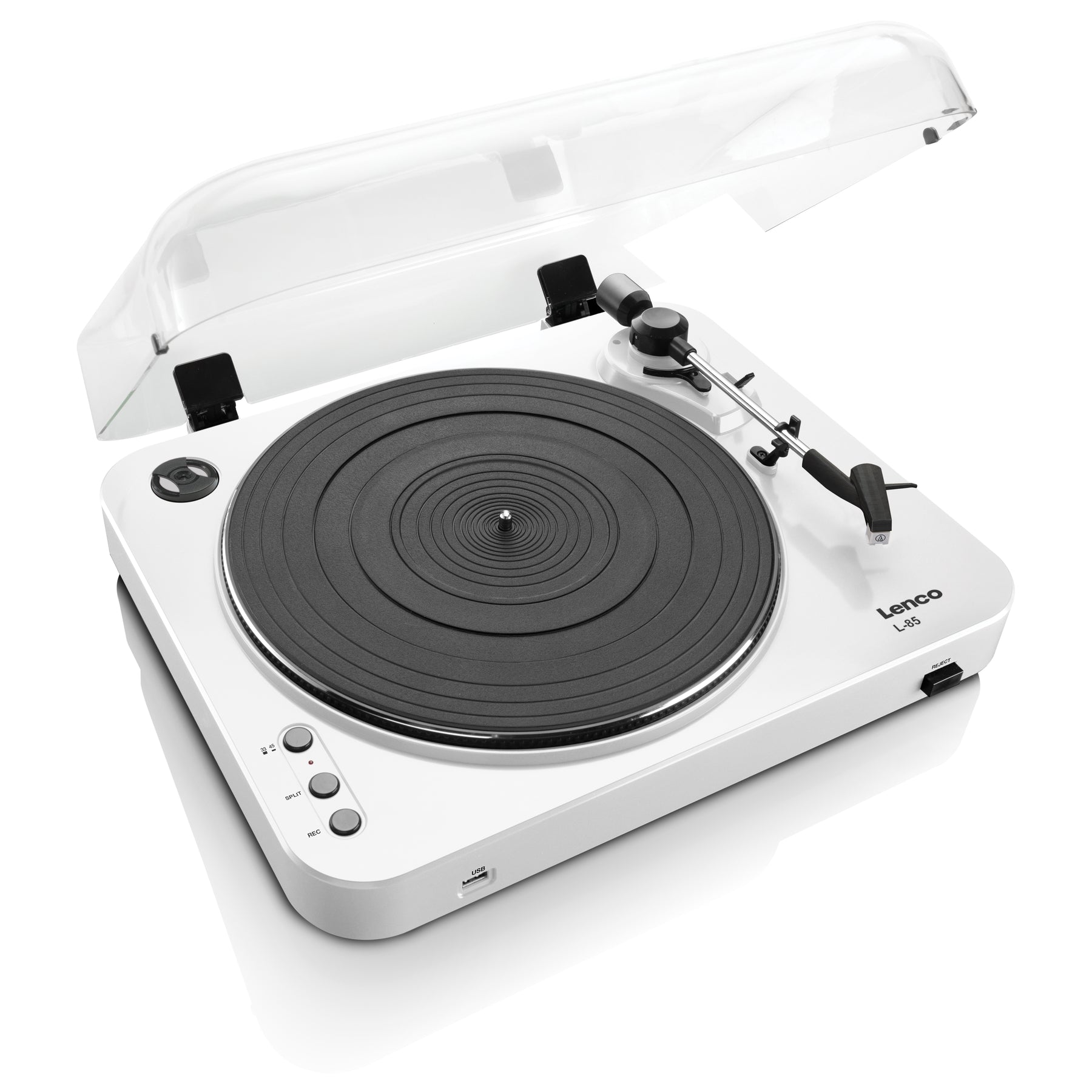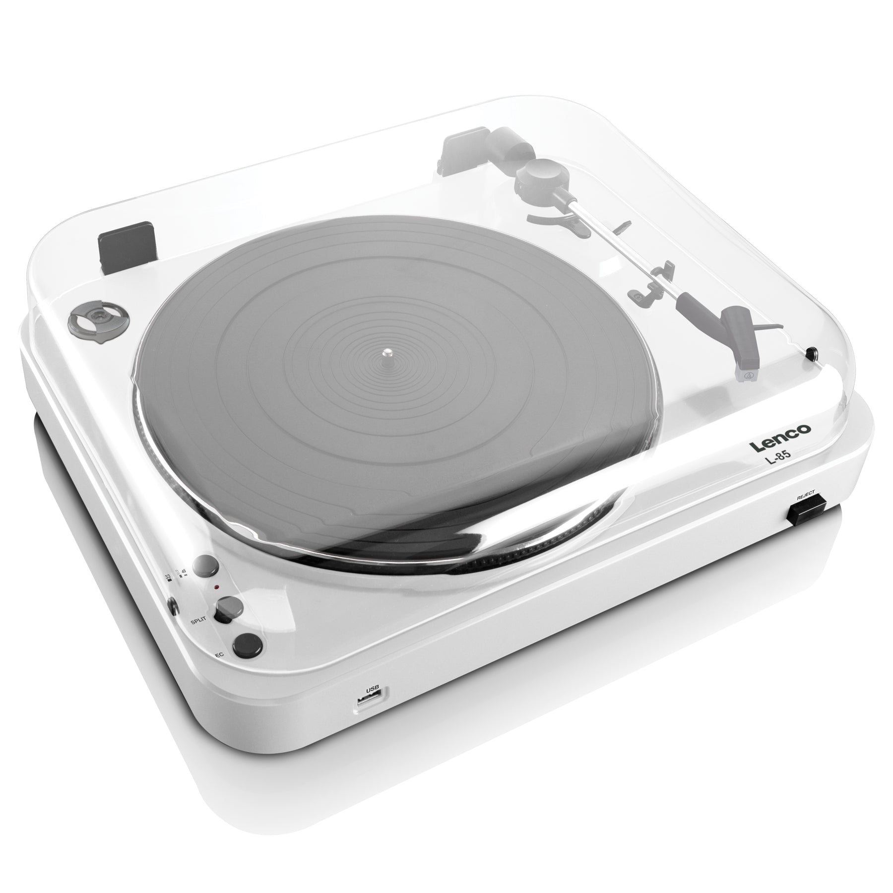 Lenco L-85 wyposażony jest w mechaniczny podnośnik ramienia, igłę MMC oraz wbudowany przedwzmacniacz. Można grać w dwóch prędkościach: 33 RPM i 45 RPM. Dzięki zdejmowanej plastikowej obudowie gramofon zawsze pozostaje wolny od kurzu.