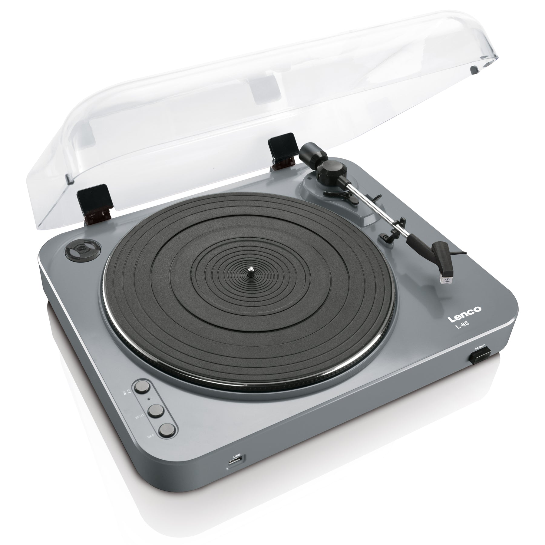 Lenco L-85 wyposażony jest w mechaniczny podnośnik ramienia, igłę MMC oraz wbudowany przedwzmacniacz. Można grać w dwóch prędkościach: 33 RPM i 45 RPM. Dzięki zdejmowanej plastikowej obudowie gramofon zawsze pozostaje wolny od kurzu.