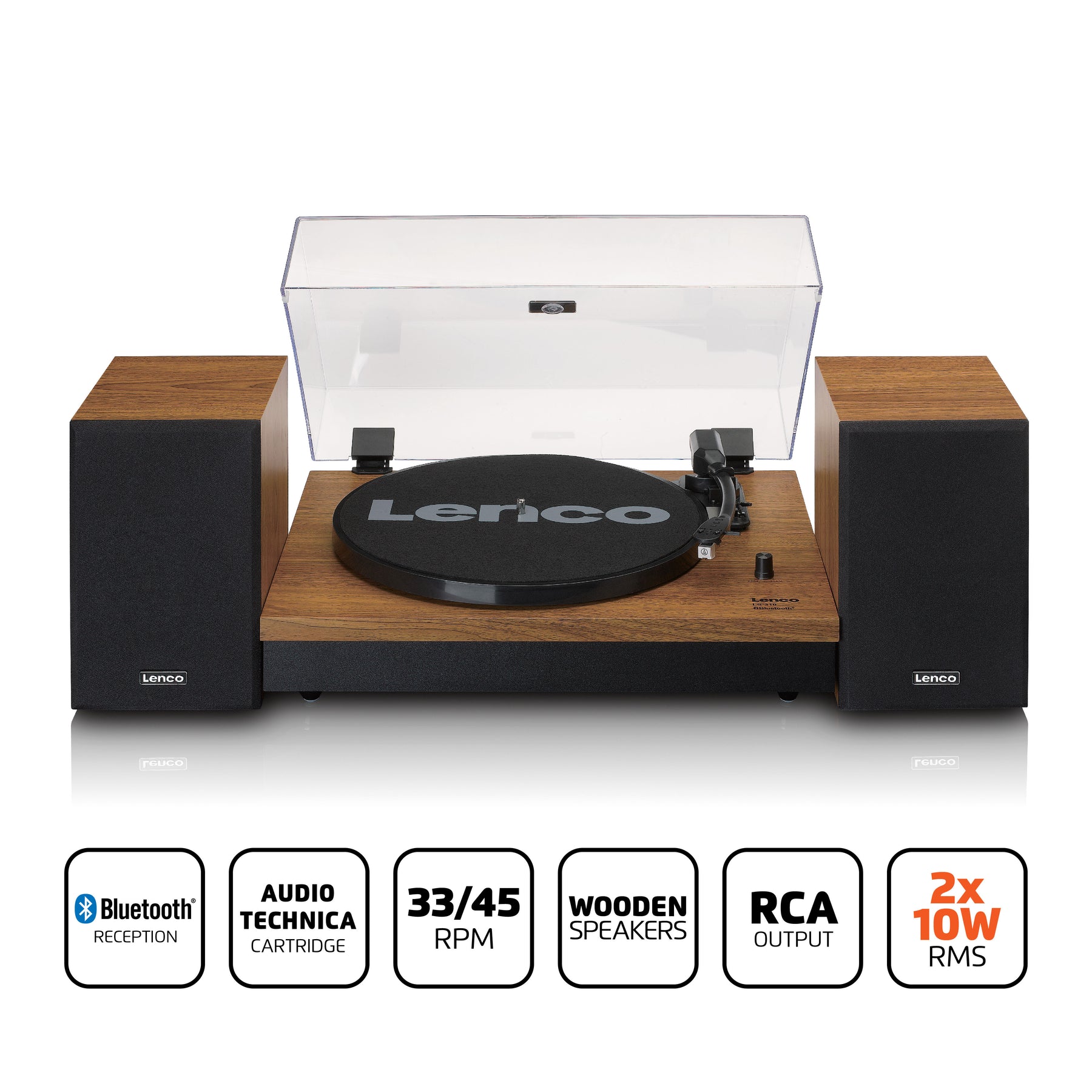 Lenco LS-310 to system gramofonu z 2 oddzielnymi drewnianymi głośnikami. Ciesz się słuchaniem płyt winylowych w mgnieniu oka, dzięki wysokiej jakości gramofonowi i łatwej konfiguracji za pomocą głośników. Głośniki można również umieścić oddzielnie od odtwarzacza, co idealnie nadaje się do uzyskania prawdziwego efektu stereo.