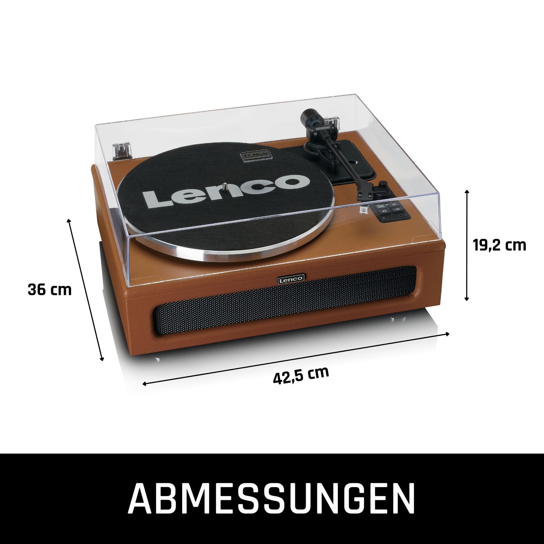 Plastikowa osłona przeciwpyłowa gwarantuje, że Twój gramofon nie zniknie pod warstwą kurzu. Lenco LS-430 jest wykończony piękną imitacją skóry i dostępny w kolorze czarnym lub brązowym.