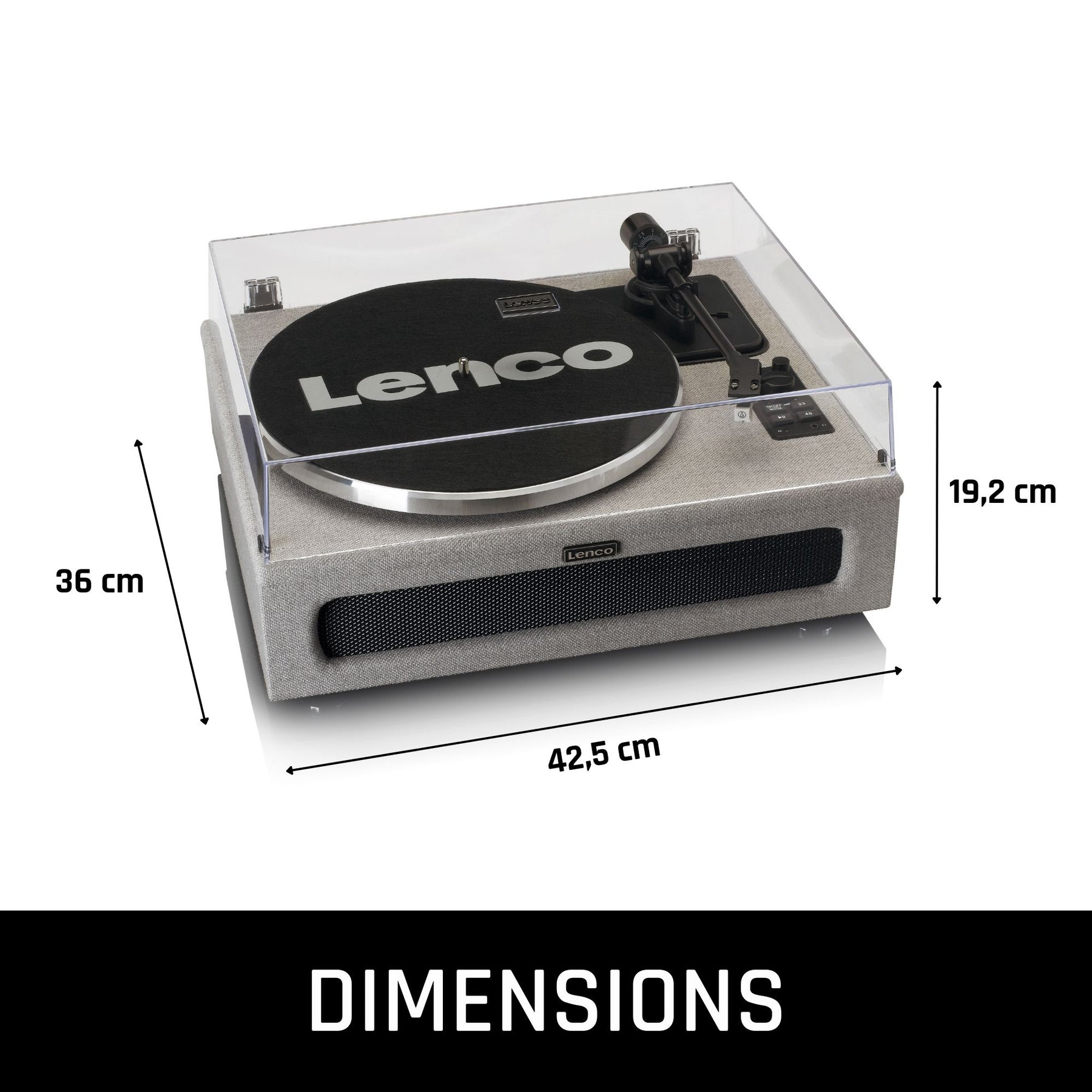 Plastikowa osłona przeciwpyłowa gwarantuje, że gramofon nie zniknie pod warstwą kurzu. Lenco LS-440 jest wykończony pięknym materiałem i dostępny w kolorze niebieskim/beżowym lub szarym.