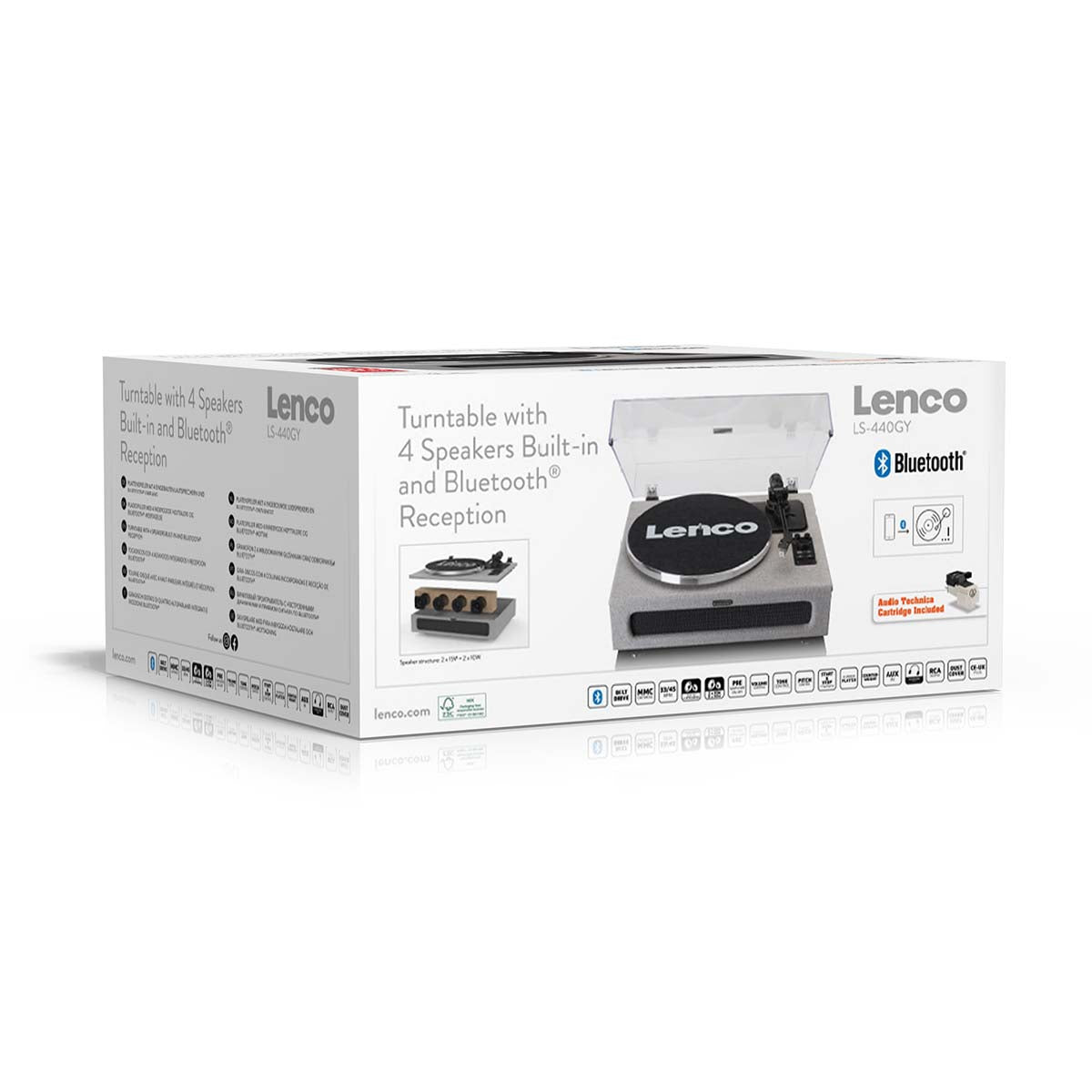Lenco LS-440 to gramofon z wbudowanymi głośnikami. Cztery głośniki (dwa głośniki o mocy 15 W i dwa głośniki o mocy 10 W) zapewniają ładnie zrównoważony dźwięk. Gramofon jest łatwy w użyciu. Po prostu podłącz go i od razu ciesz się ulubioną płytą LP! Alternatywnie możesz przesyłać strumieniowo swoją listę odtwarzania na smartfonie lub tablecie za pomocą Bluetooth® 5.0, aby połączyć się z głośnikami gramofonu. Jeśli chcesz się zrelaksować i zrelaksować przy ulubionej muzyce, po prostu podłącz słuchawki.