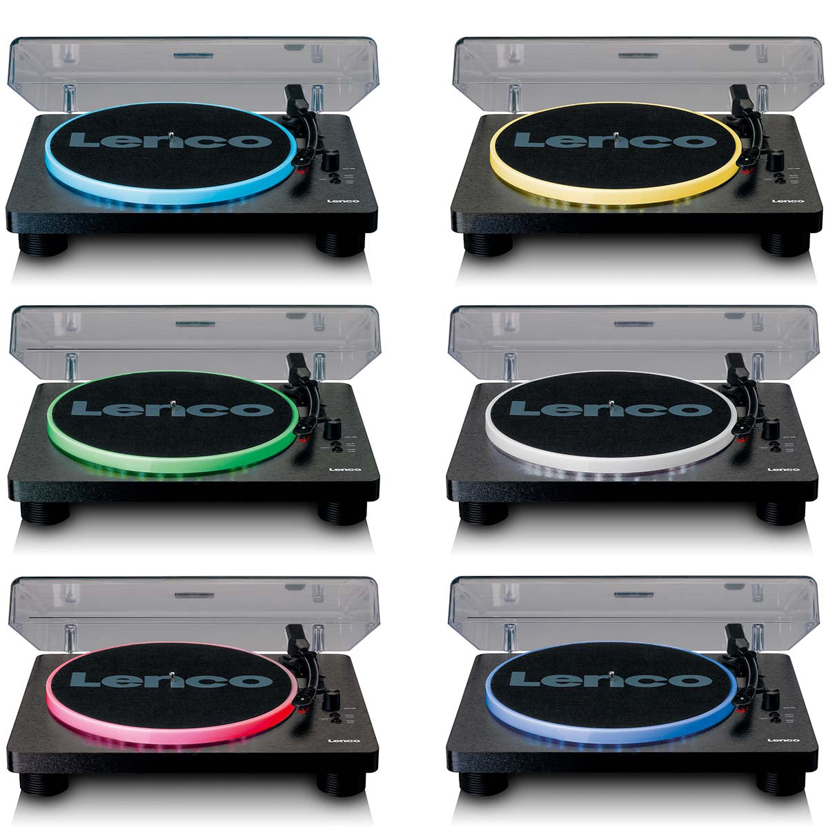 Lenco LS-50LED to nowoczesny gramofon z dwoma wbudowanymi głośnikami i animacją świetlną LED na talerzu. Kolory świateł zmieniają się w rytm muzyki, wybierz funkcję automatycznego zanikania lub ręcznie wybierz swój ulubiony kolor. Gramofonu można używać także bez oświetlenia. Ciesz się ulubionym winylem za naciśnięciem jednego przycisku. Zapomnij o skomplikowanych instalacjach muzycznych, ponieważ dzięki Lenco LS-50LED możesz bez wysiłku przywrócić swoje nagrania do życia.