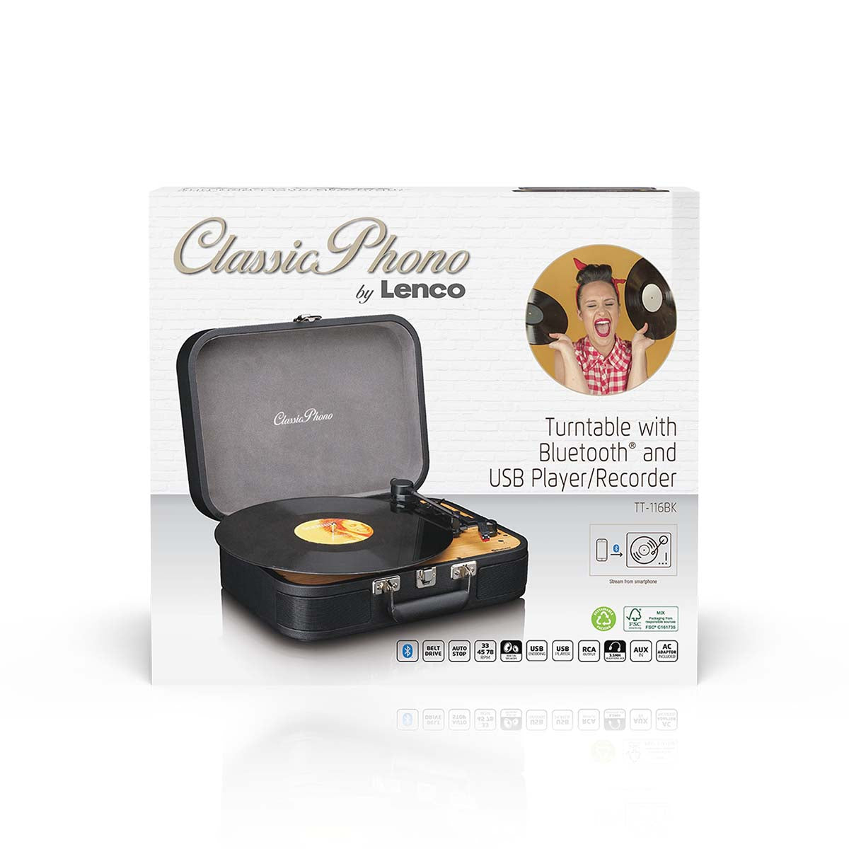 - Gramofon Bluetooth® TT-116BK