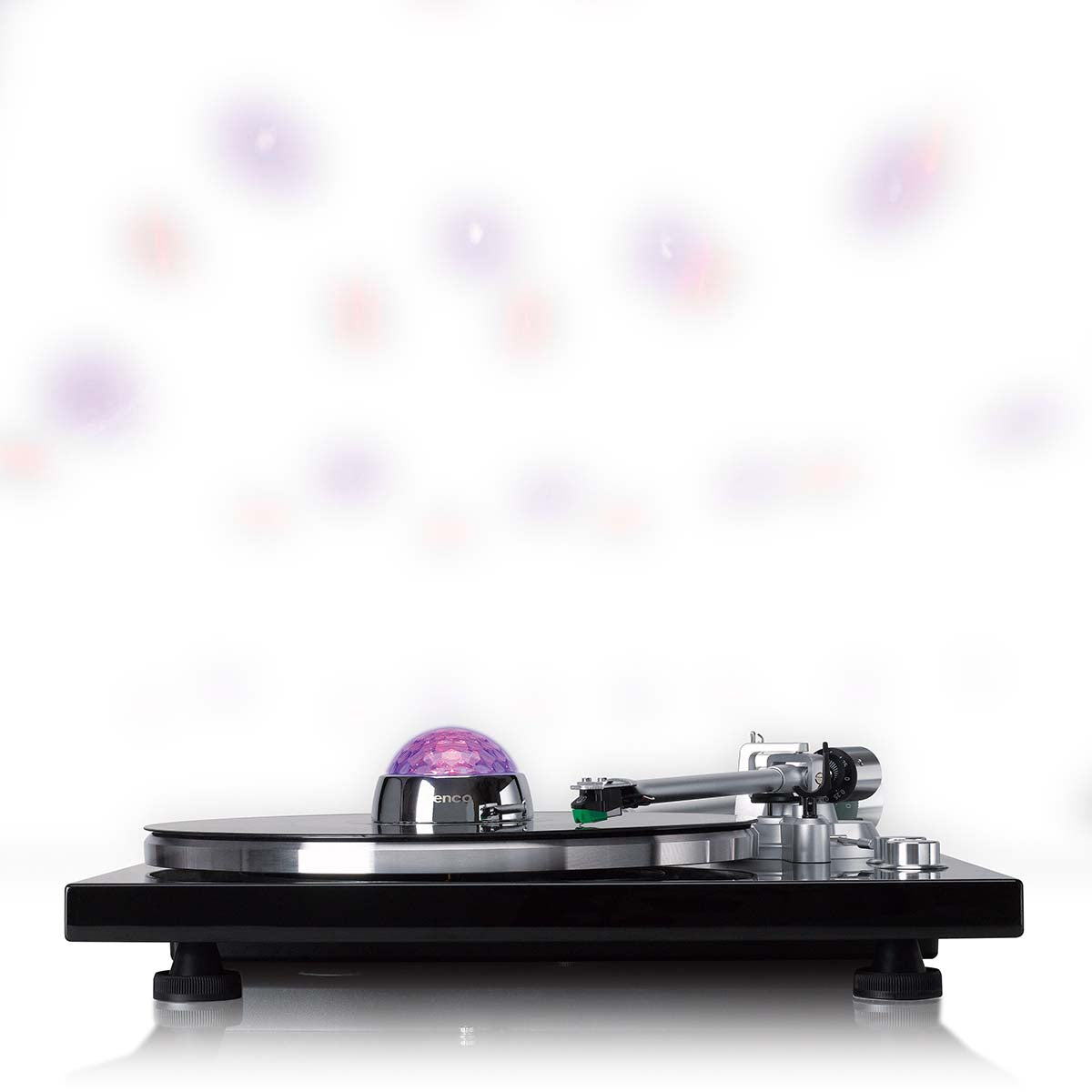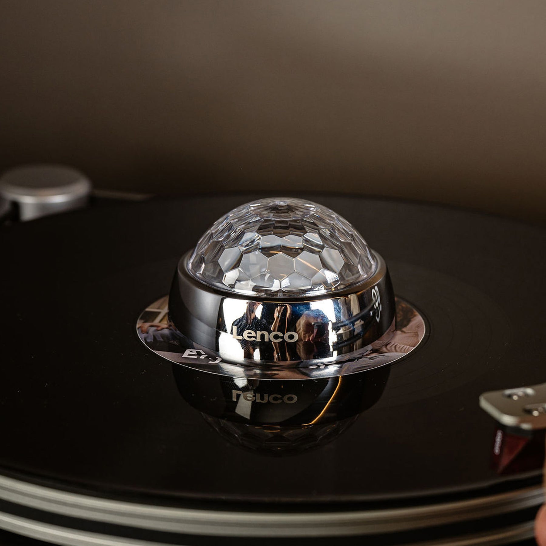 Whether you’re an audiophile seeking perfection in sound reproduction or someone looking to add a touch of extra atmosphere to your record playing, the Lenco TTA-080SI is the perfect record player accessory. The Lenco TTA-080SI is an innovative record stabiliser, also known as a record player weight, that can be easily placed in the centre of the record player's platter. Weighing 250 grams and doubling as a disco ball with RGB light effects, the stabiliser gently presses on the record, ensuring uniform contact with the turntable. This reduces vibrations and keeps the record securely in place, resulting in a more stable rotation. A stable rotation, in turn, contributes to precise and balanced sound reproduction. The unique combination of technical precision and a playful, festive design makes the Lenco TTA-080SI the perfect gift for any record player enthusiast.