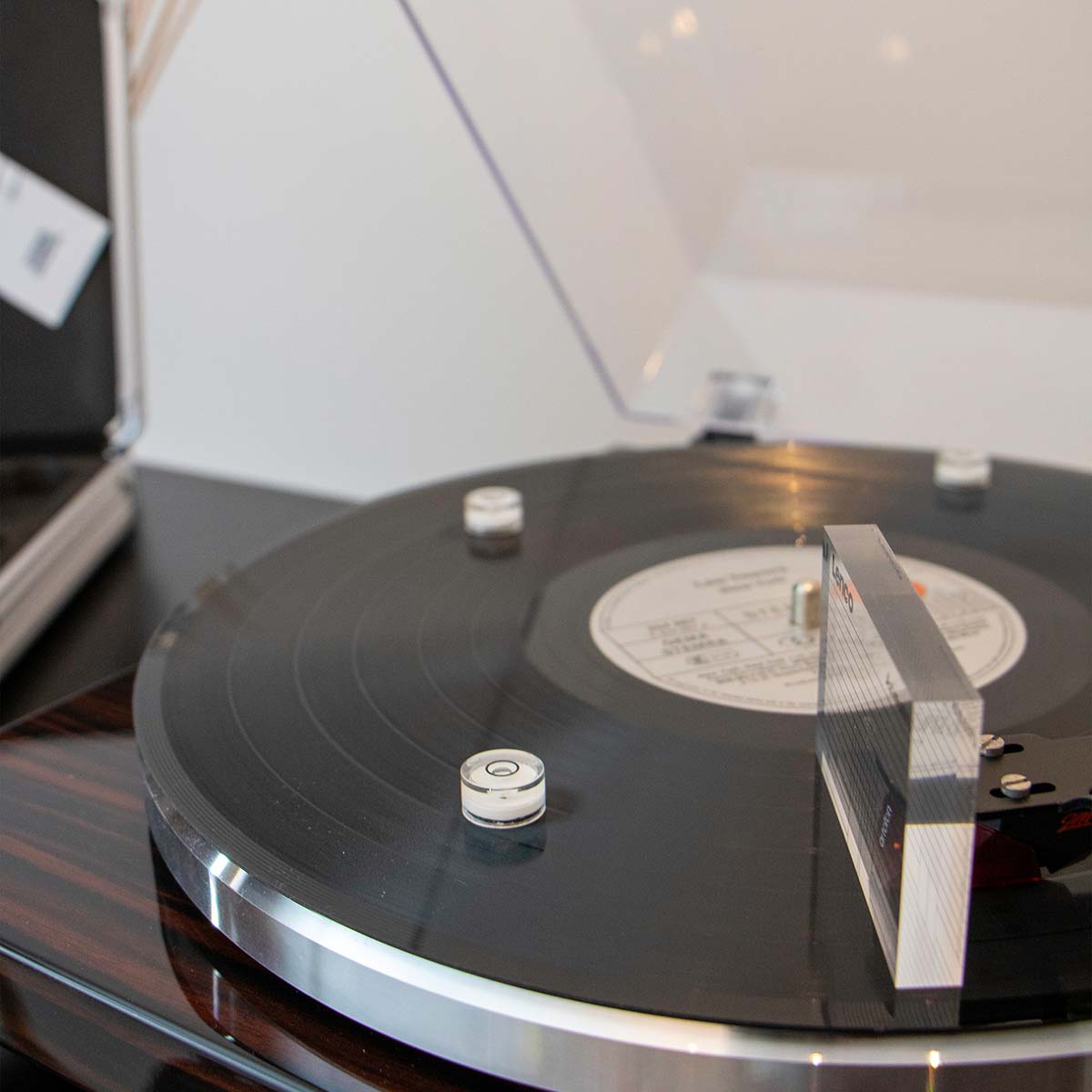 Dzięki czterem małym poziomicom łatwo sprawdzić, czy poszczególne części gramofonu są prawidłowo zamontowane względem siebie. Można je stosować pojedynczo w celu sprawdzenia prawidłowego położenia ramienia względem talerza gramofonu. Dla zapalonych entuzjastów gramofonów te cztery małe poziomice są cennym dodatkiem do doskonale zrównoważonego środowiska odsłuchowego.
