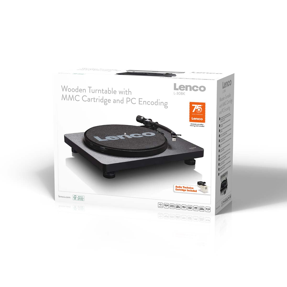 Do you want to play your favourite sounds from the past to your children? The Lenco L-30 produces a superb high-quality sound and your children will be amazed. The record player is so easy to use, you can even let them play a record by themselves. The Lenco L-30 is equipped with a moving magnet cartridge (MMC), auto stop, belt drive and a built-in pre-amp. You can play records at two speeds: 33 RPM and 45 RPM. A removable plastic cover protects the record player from dust.