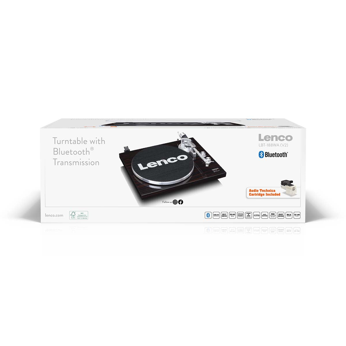 The Lenco LBT-188 is a record player with Bluetooth® functionality. Connecting this record player to your Bluetooth® speaker or headphones is easy and convenient providing the ideal set-up for enjoying a full warm sound while lounging on your couch at home. Retrieve your old records from the attic and play them on this modern record player. Enjoy the crystal-clear sound of your vinyl, both old and new. Switch from 33 to 45 rpm to play your vinyl record at the right speed.