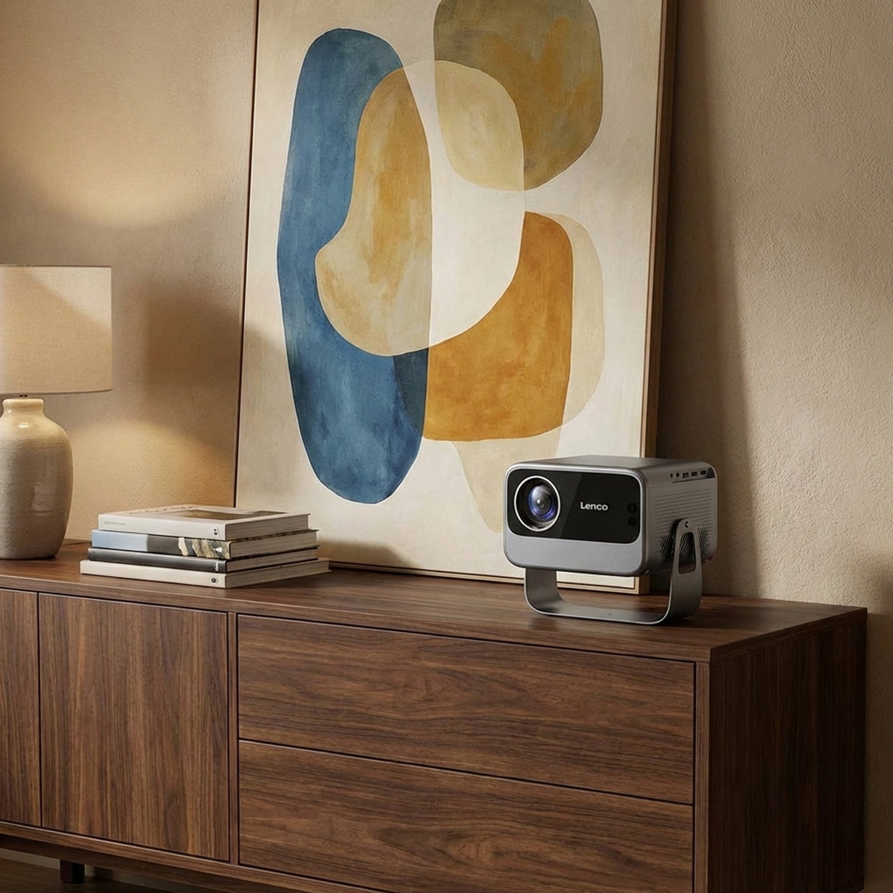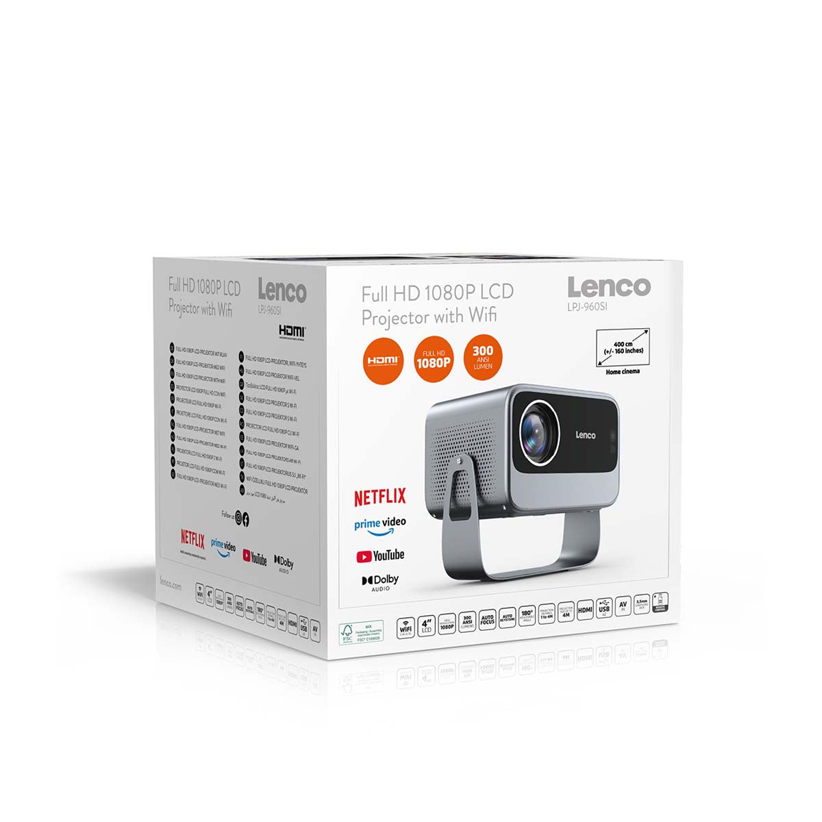 With the Lenco LPJ-960SI Full HD LCD projector with WiFi, you can project movies, series and games in sharp quality. The projector is compact and ready to use immediately. Switch it on, place it at the right angle using the 180° rotatable stand and let the automatic focus and keystone correction do the work. Thanks to built-in WiFi, you can watch Netflix, Prime Video and YouTube directly without extra devices. The integrated 5 W stereo sound delivers clear audio during every viewing session.