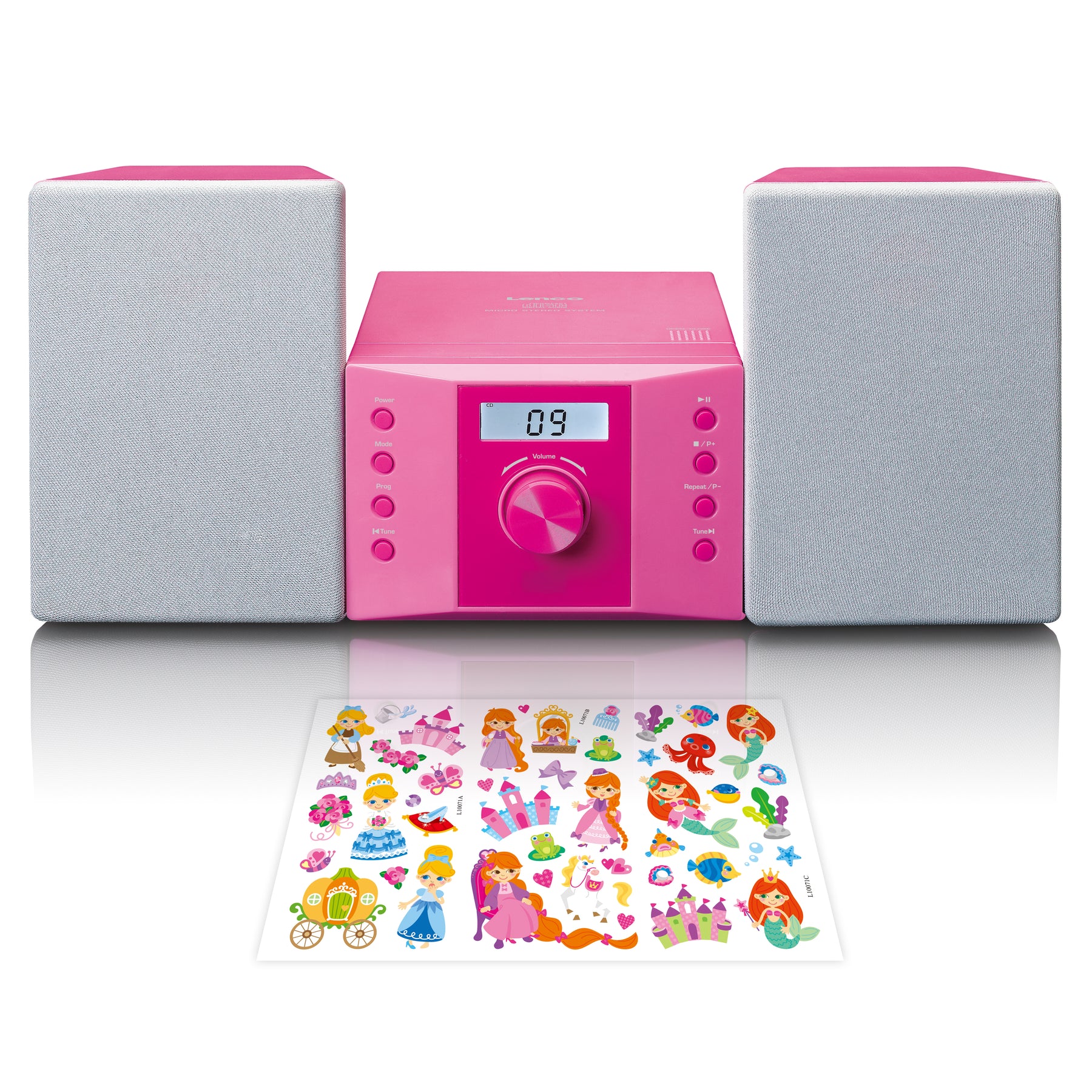 Brighten up the children's room with the MC-013PK pink micro-set from Lenco. It comes with a sticker sheet, so your child can creatively decorate the unit with stickers.