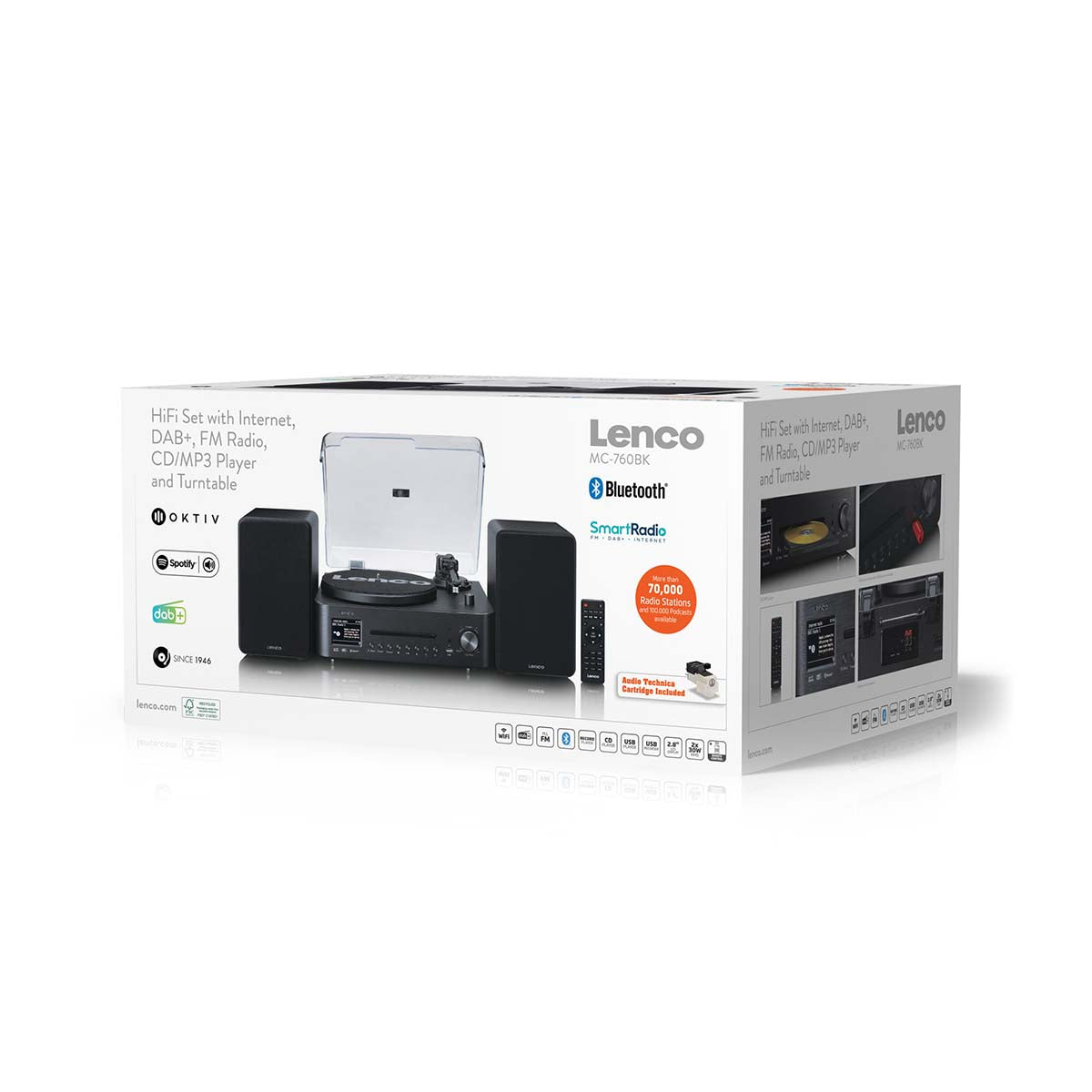 Are you looking for a powerful and complete music system that can play virtually everything? Then the Lenco MC-760BK is an excellent choice. This high-quality HiFi stereo system with record player combines modern streaming capabilities and extensive radio and CD functionality in one stylish black design. As the improved successor to the MC-460BK, this model offers more power, enhanced connectivity and an even more refined sound performance.